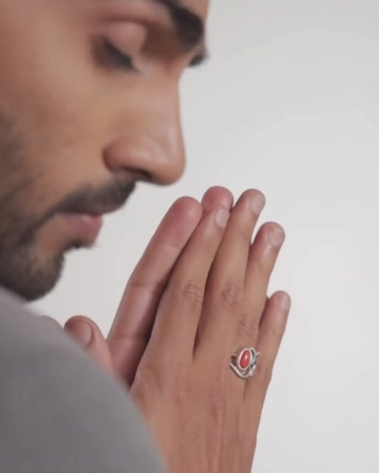 Majestic Coral (Moonga) Ring in 925 Sterling Silver - Shakti