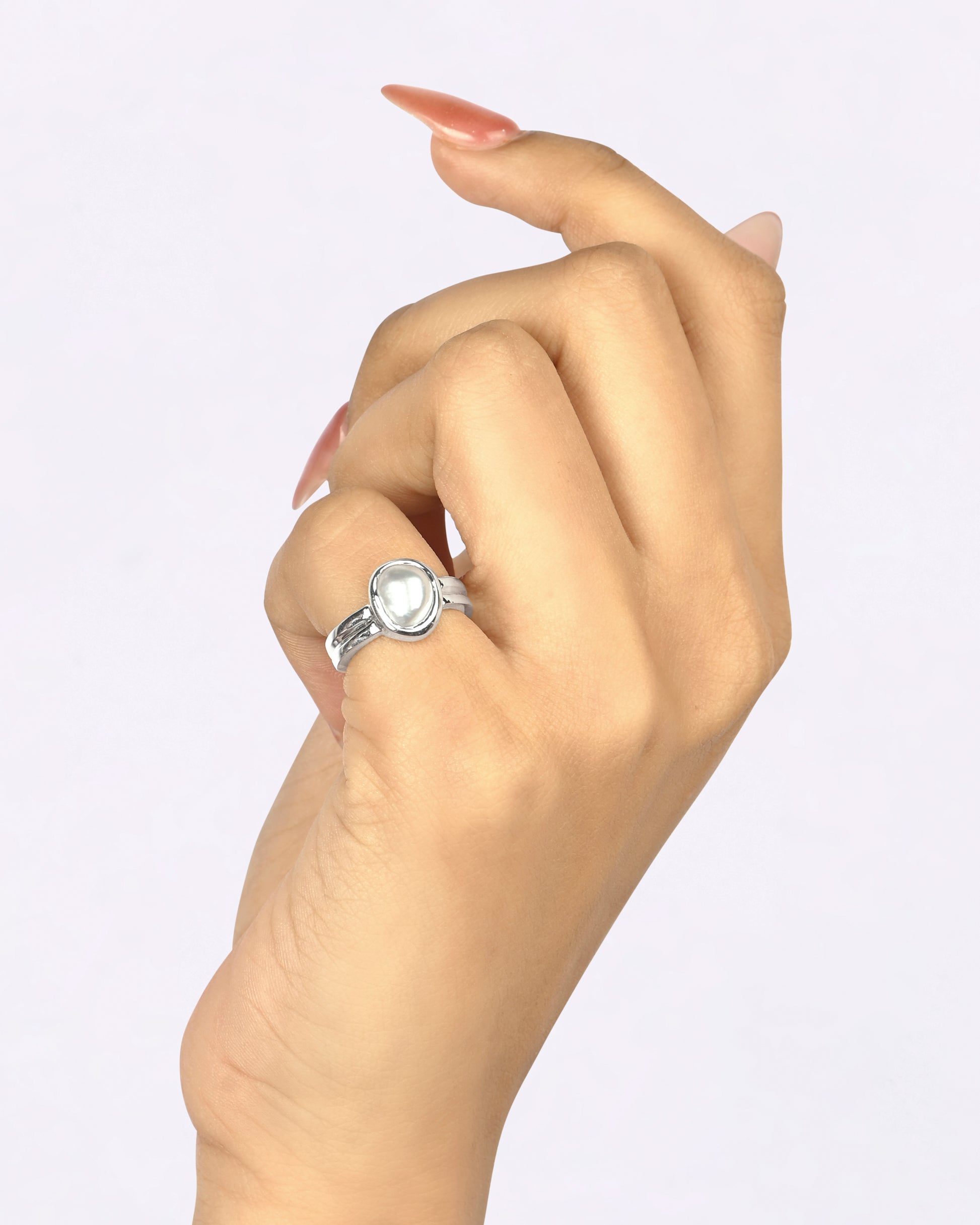 Authentic Pearl (Moti) Ring in 925 Sterling Silver - Shakti U