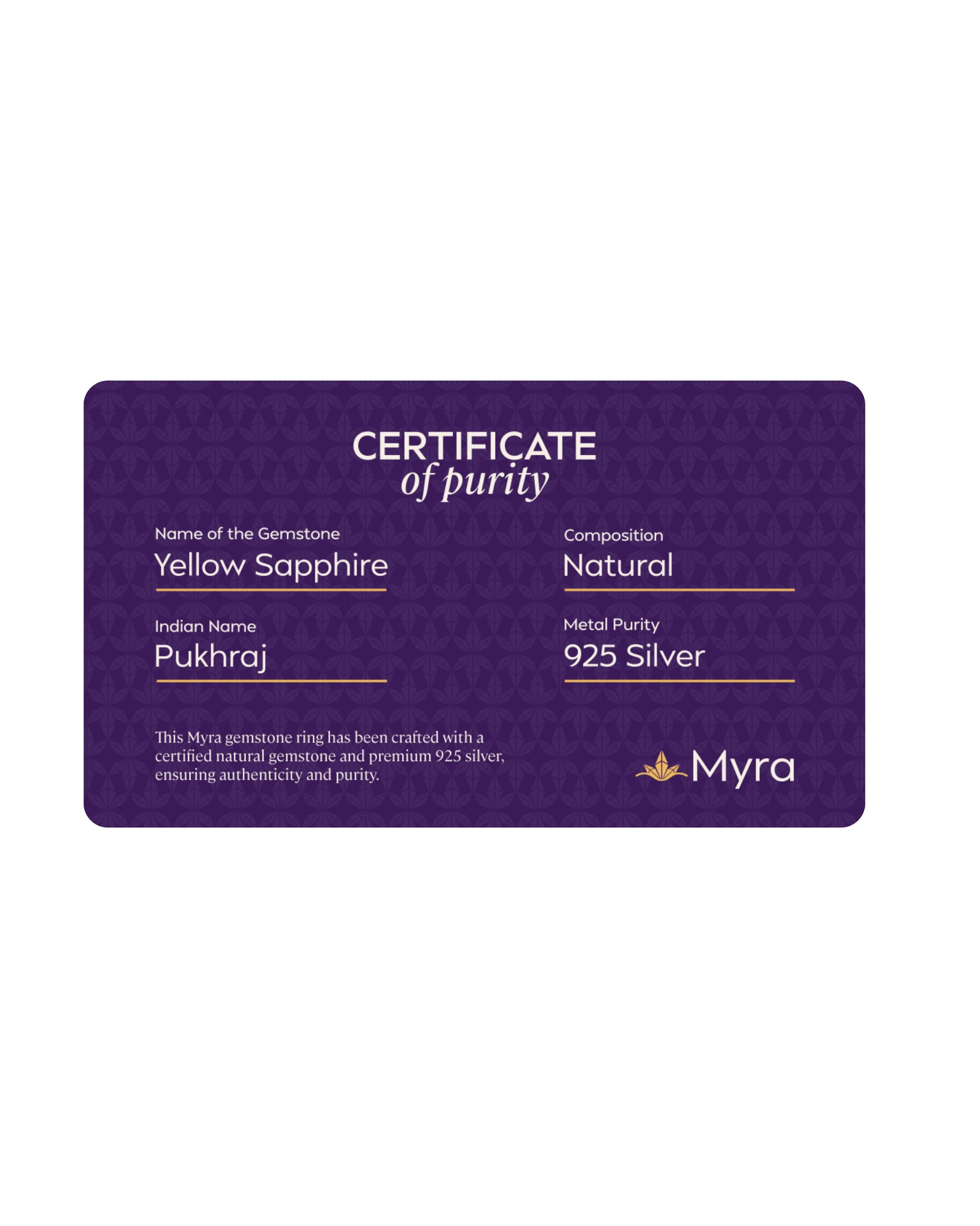 Each Myra ring includes a Brand Certificate verifying authenticity, natural origin, gemstone details and guarantee card ensuring complete transparency and trust.