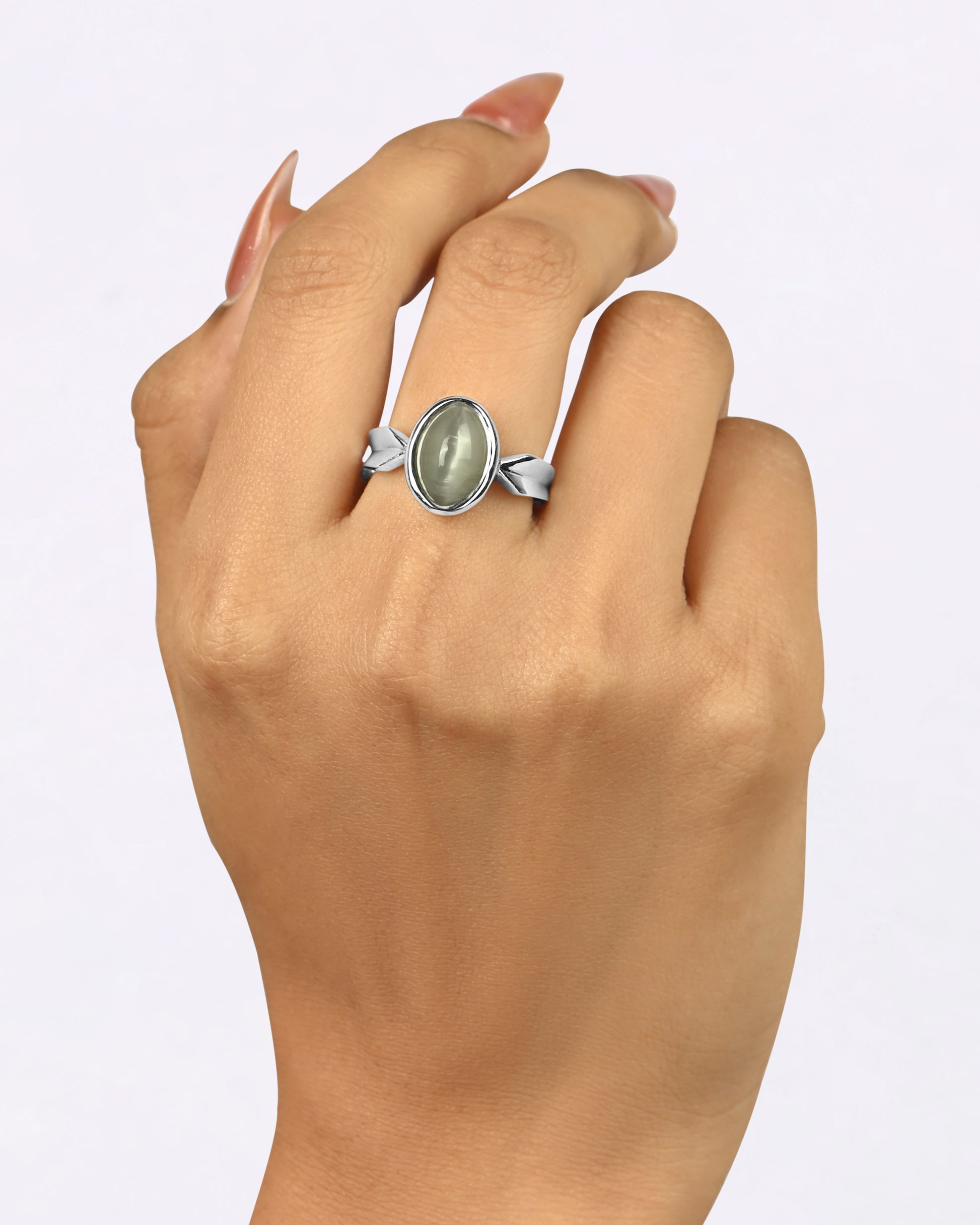 Charming Cat'S Eye (Lehsunia) Ring in 925 Sterling Silver - Shakti