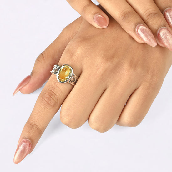 Infuse your life with positivity and personal strength with our Golden Topaz (Sunahara Pukhraj) ring, set in 925 sterling silver.