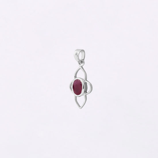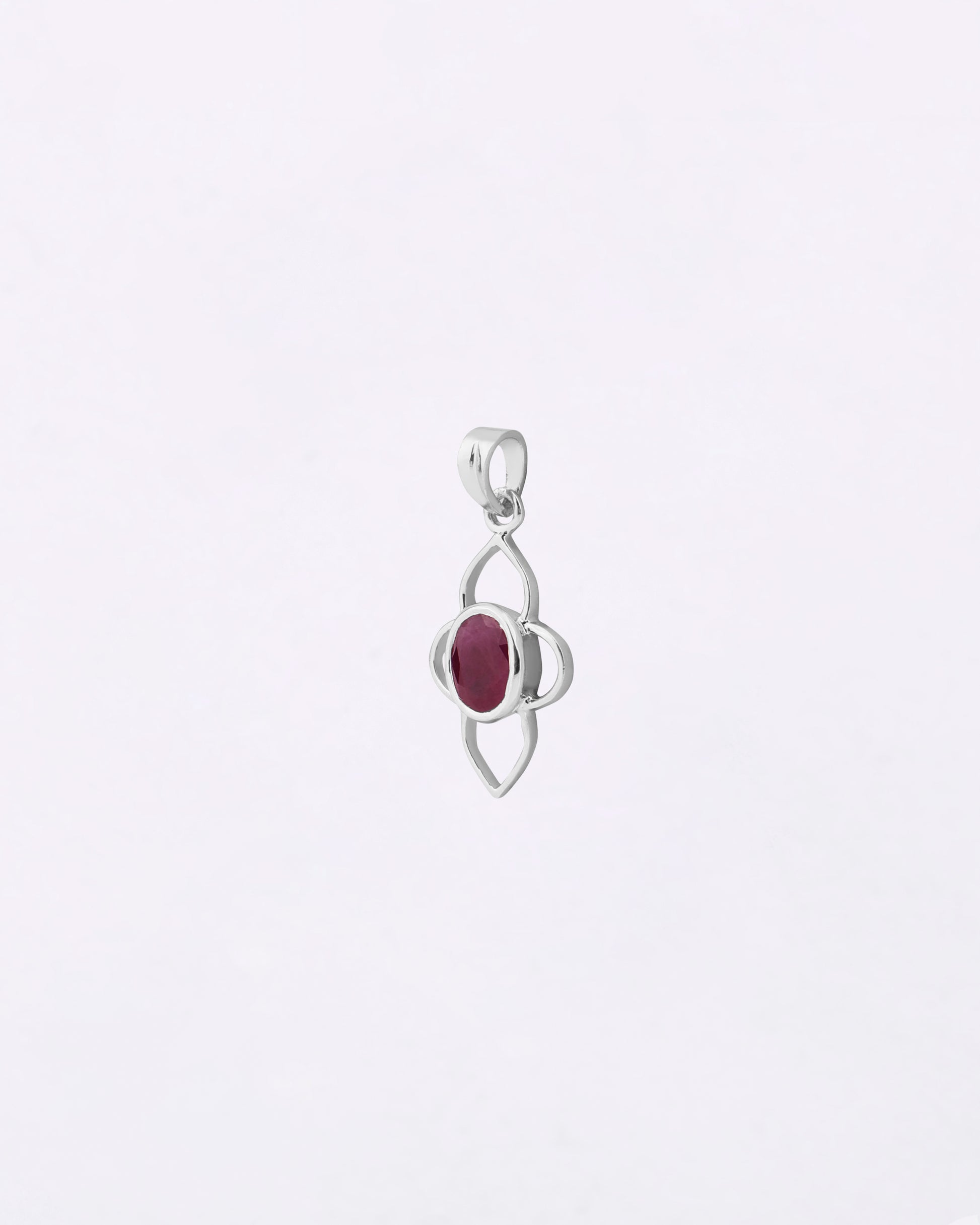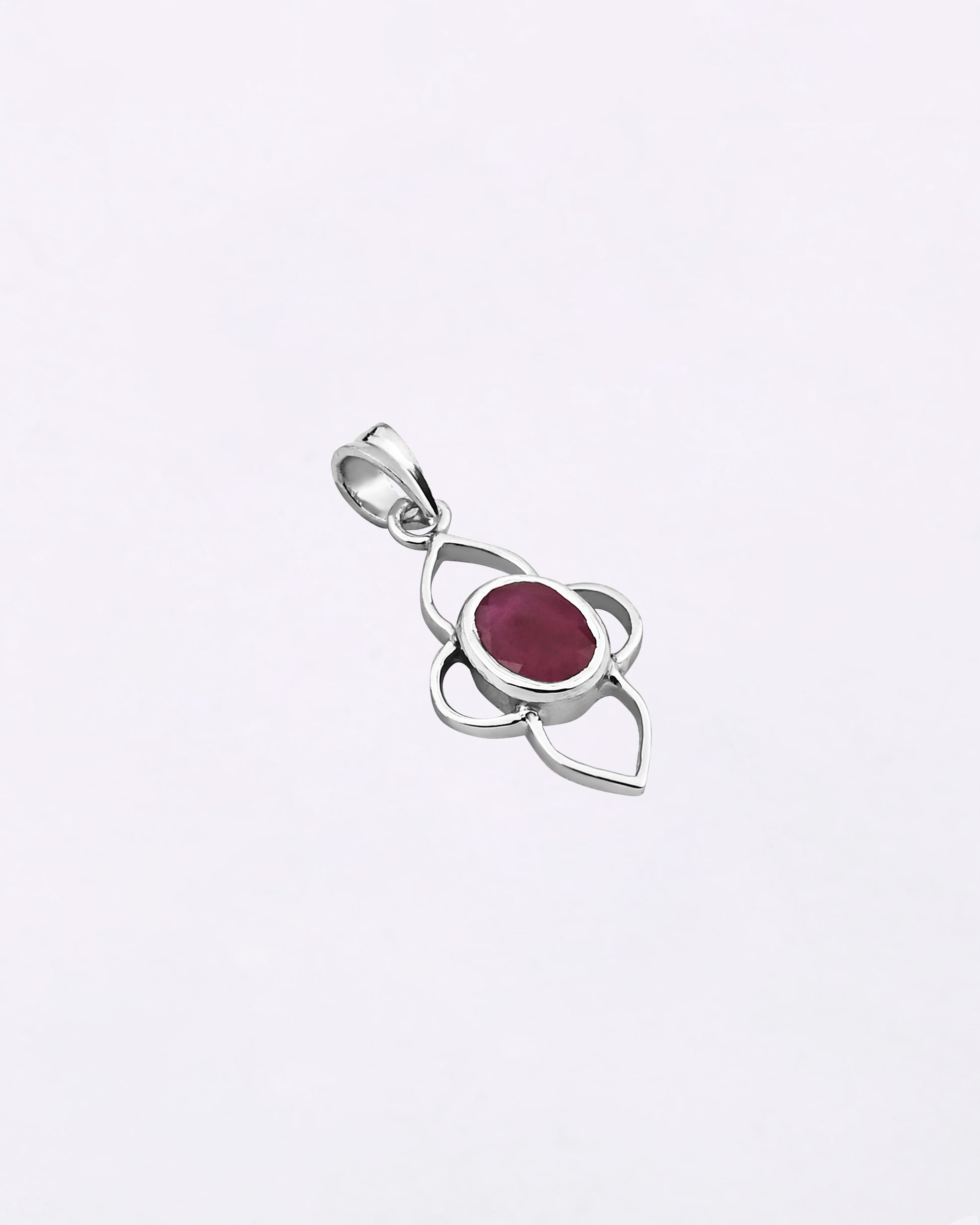 Pure and captivating, our ruby pendant is a tribute to the timeless allure of this precious gemstone. Set in 925 sterling silver, the ruby—known as Ratnaraj, or 'King of Gems'—boasts rich crimson shades with soft pink undertones. Its emotional resonance and bold beauty make it truly unique. Crafted to touch your skin, this pendant delivers unparalleled astrological benefits with 100% authentic ruby brilliance.