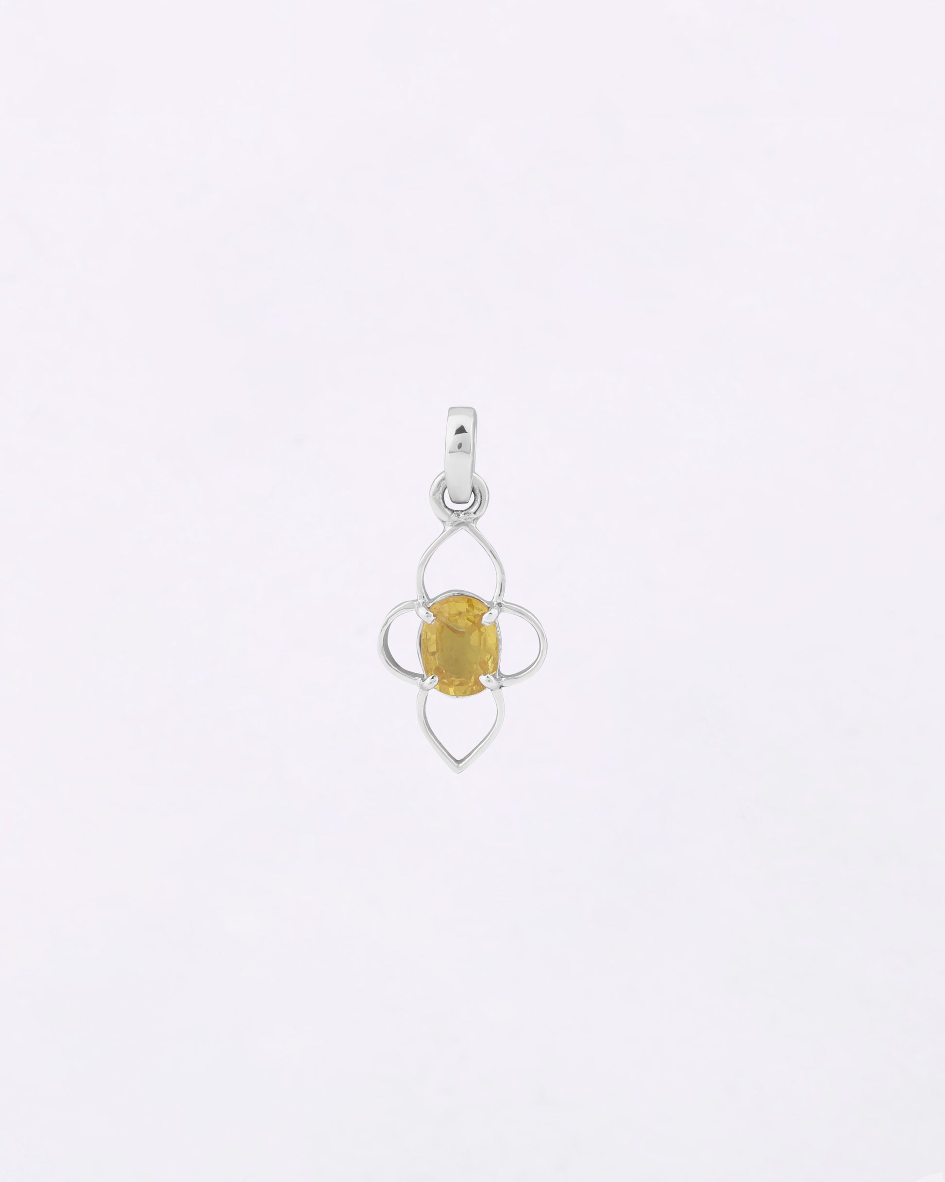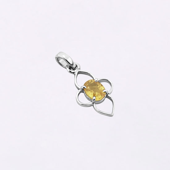 Radiating purity and brilliance, our yellow sapphire pendant is set in 925 sterling silver. Known for its golden shimmer, this exquisite gemstone reflects light beautifully, creating a warm and radiant glow. Believed to attract prosperity and success, yellow sapphire is thoughtfully designed to touch your skin, enhancing its astrological energy. Celebrate the perfect blend of elegance and authenticity with a 100% genuine yellow sapphire.