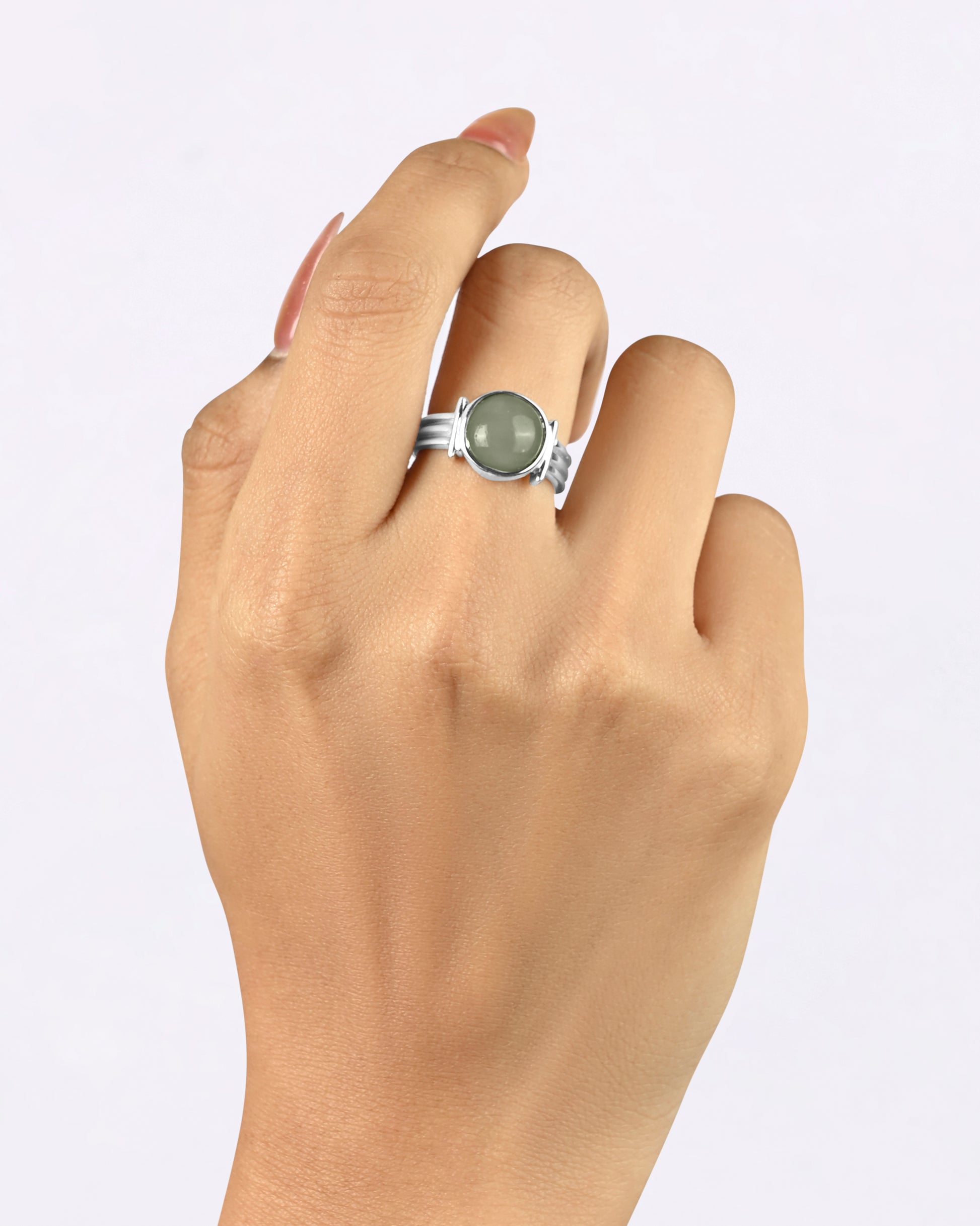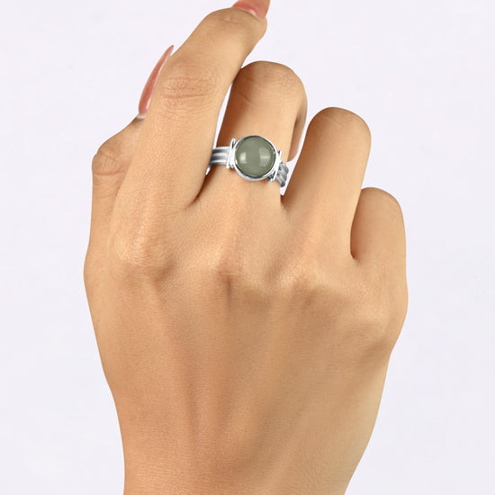 Deluxe Cat's Eye (Lehsunia) Ring in 925 Sterling Silver - Shakti