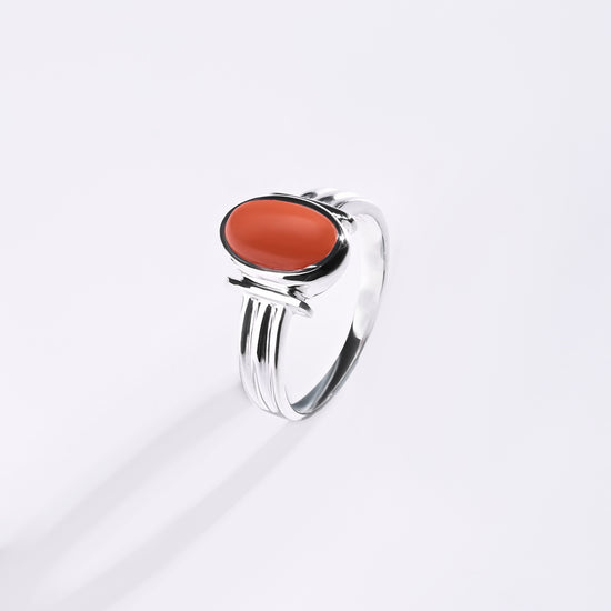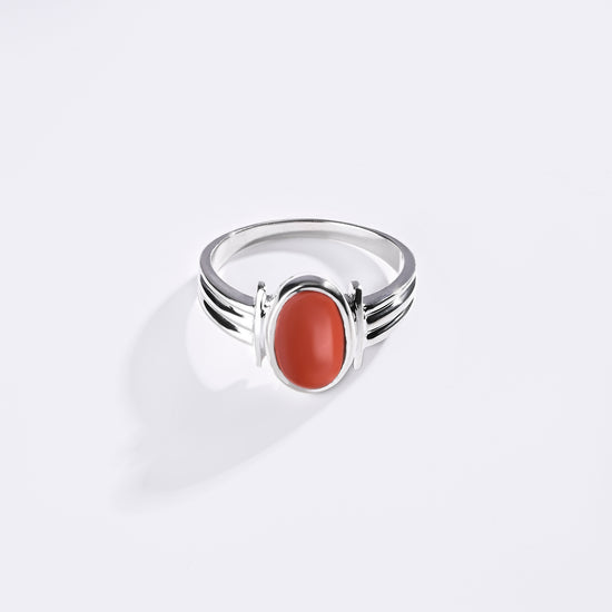 Deluxe Coral (Moonga) Ring in 925 Sterling Silver - Shakti