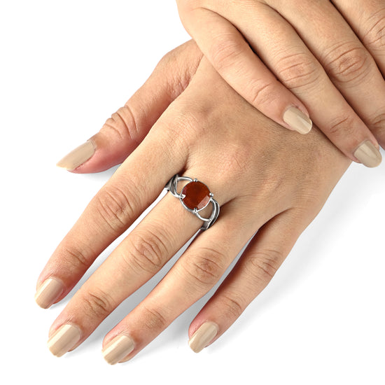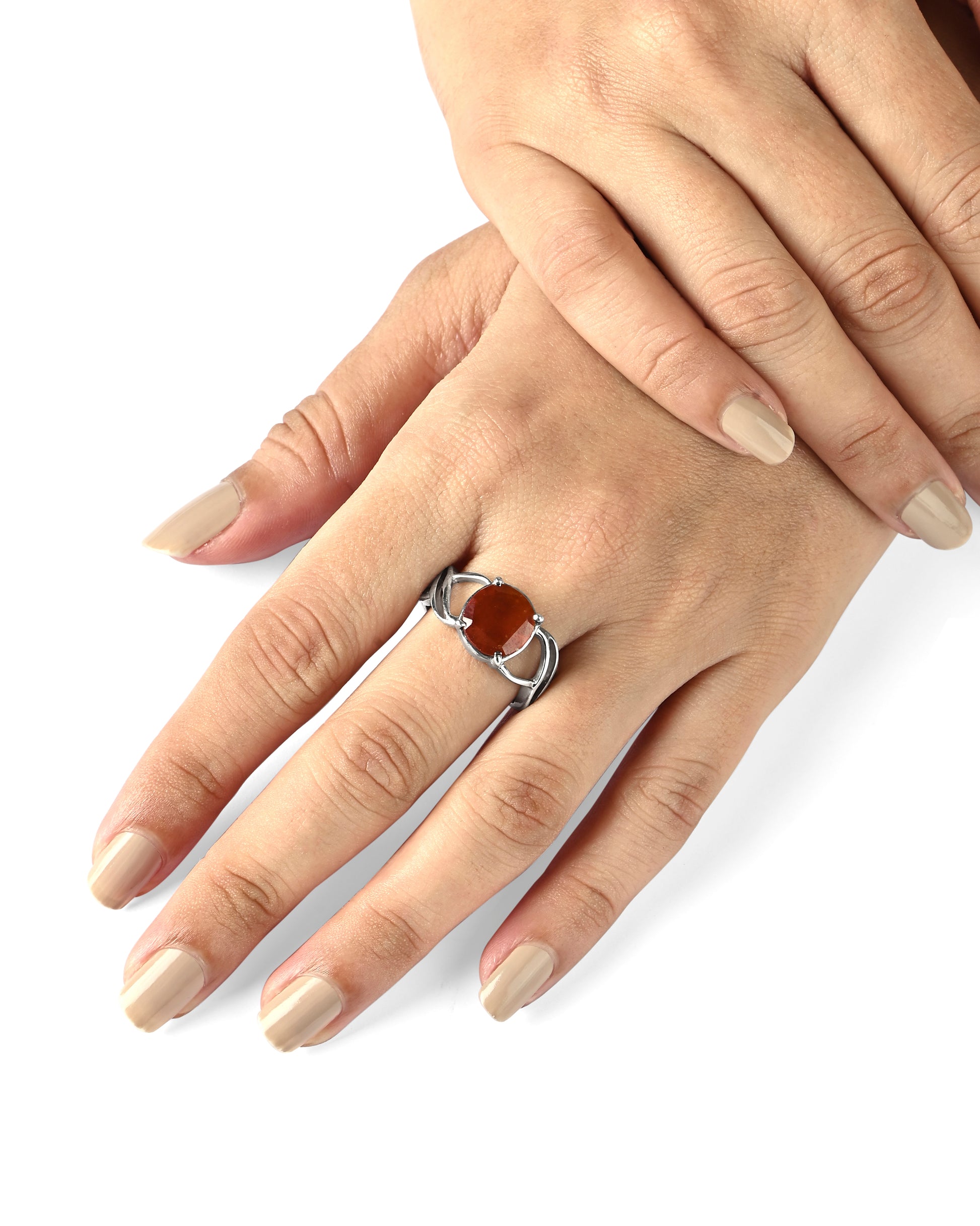 Designer Garnet (Gomed) Ring in 925 Sterling Silver - Urja
