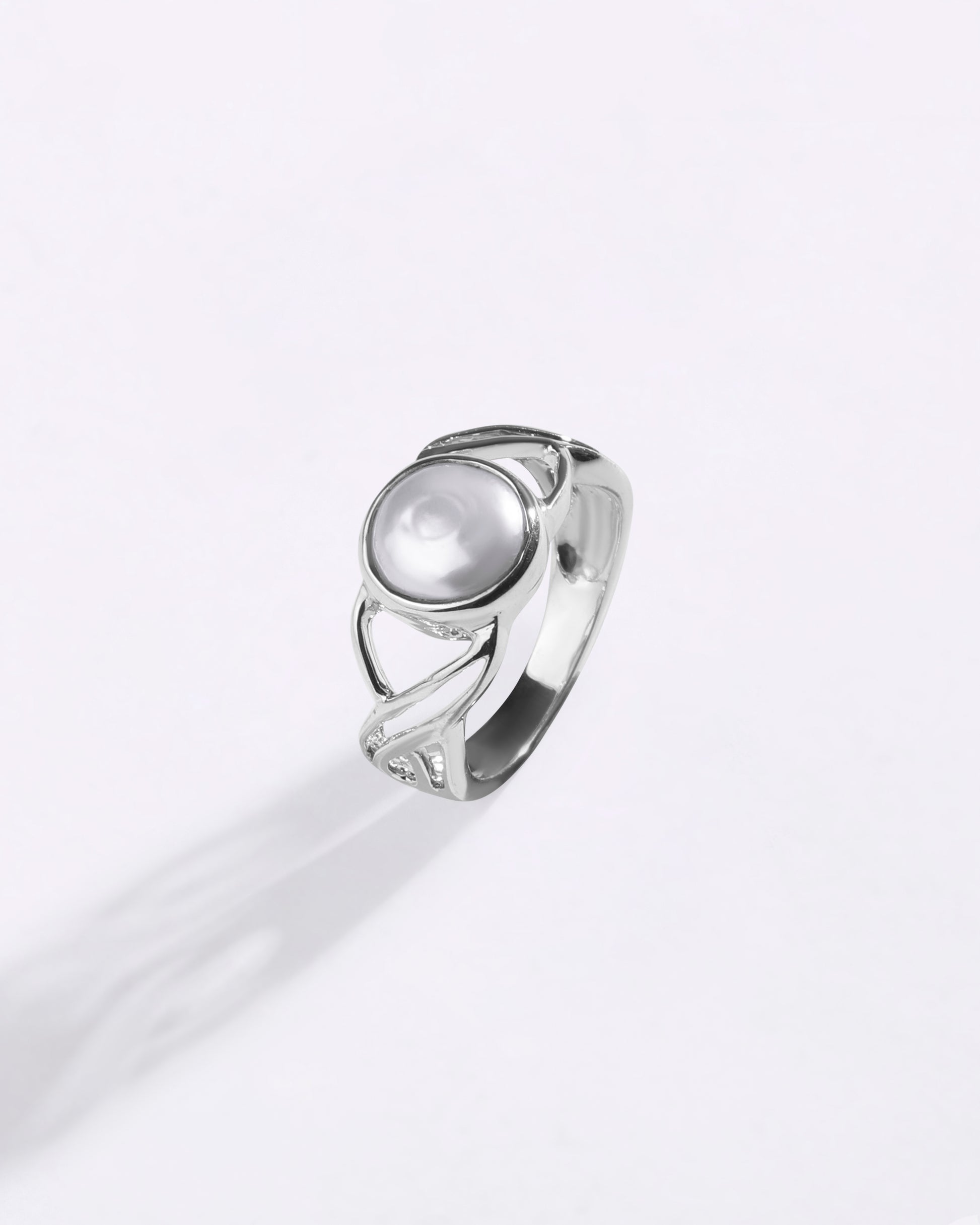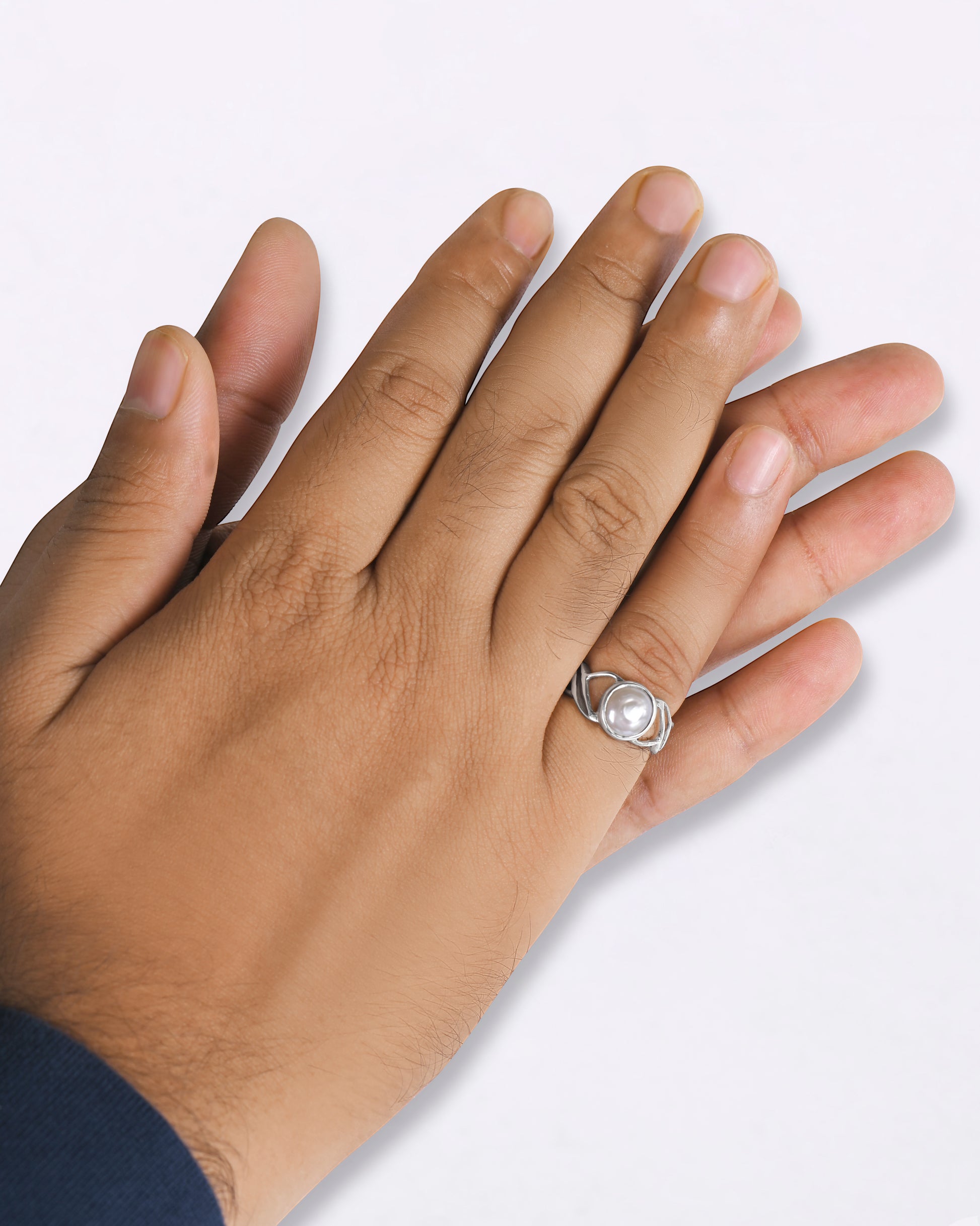 Designer Pearl (Moti) Ring in 925 Sterling Silver - Shakti R