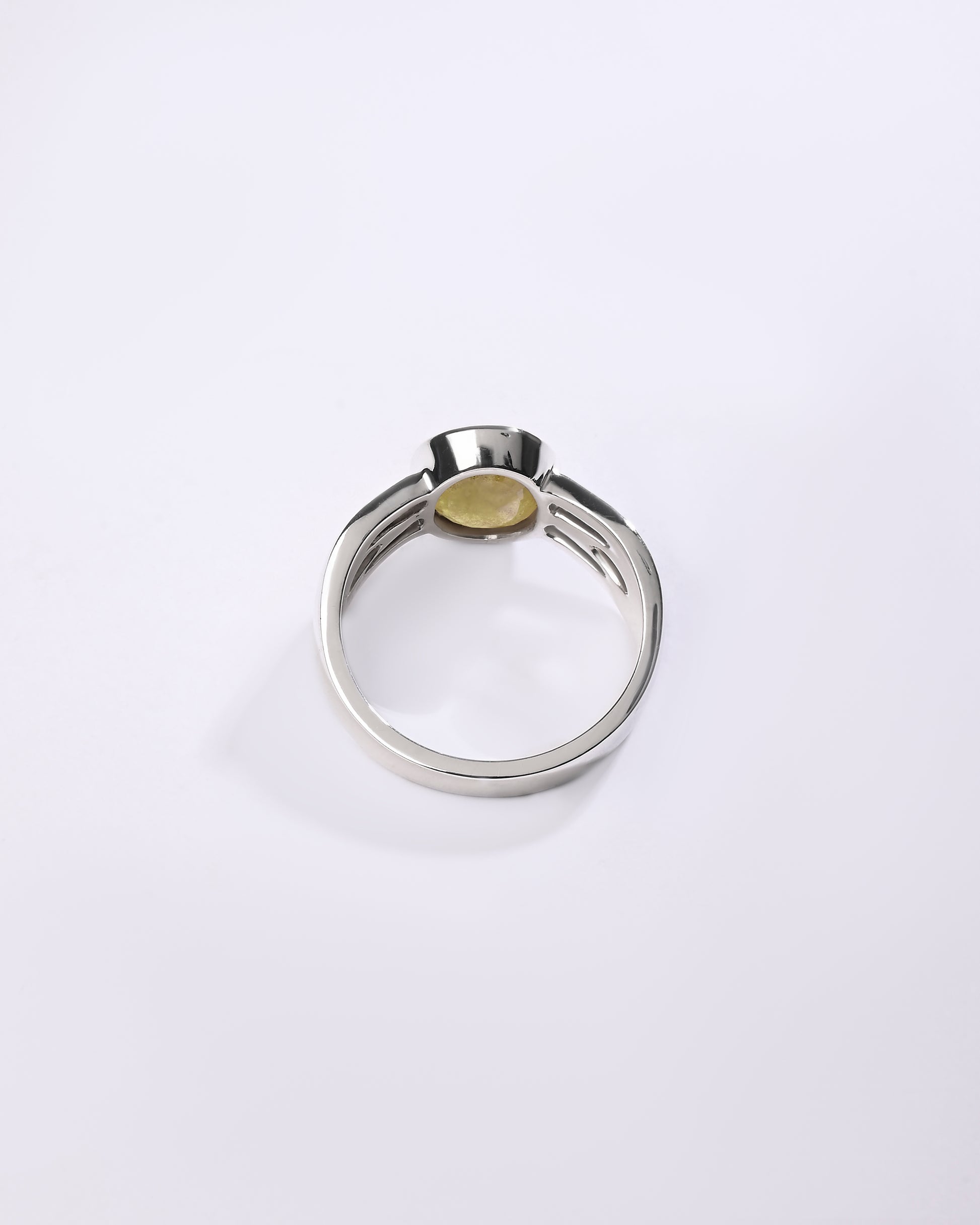 Radiating purity and brilliance, our yellow sapphire ring is set in 925 sterling silver. Known for its golden shimmer, this exquisite gemstone reflects light beautifully, creating a warm and radiant glow. Believed to attract prosperity and success, yellow sapphire is thoughtfully designed to touch your skin, enhancing its astrological energy. Celebrate the perfect blend of elegance and authenticity with a 100% genuine yellow sapphire.