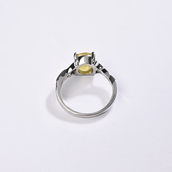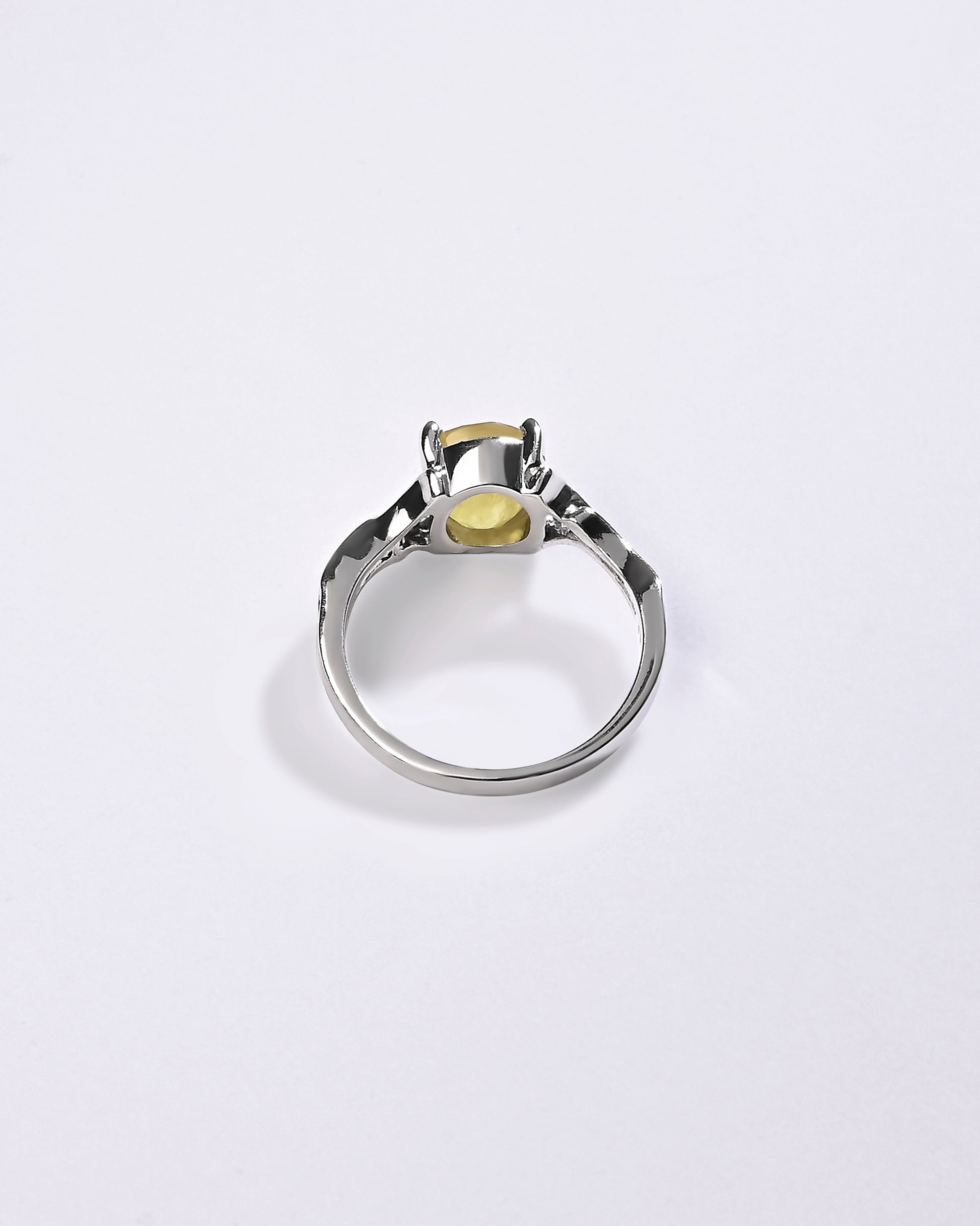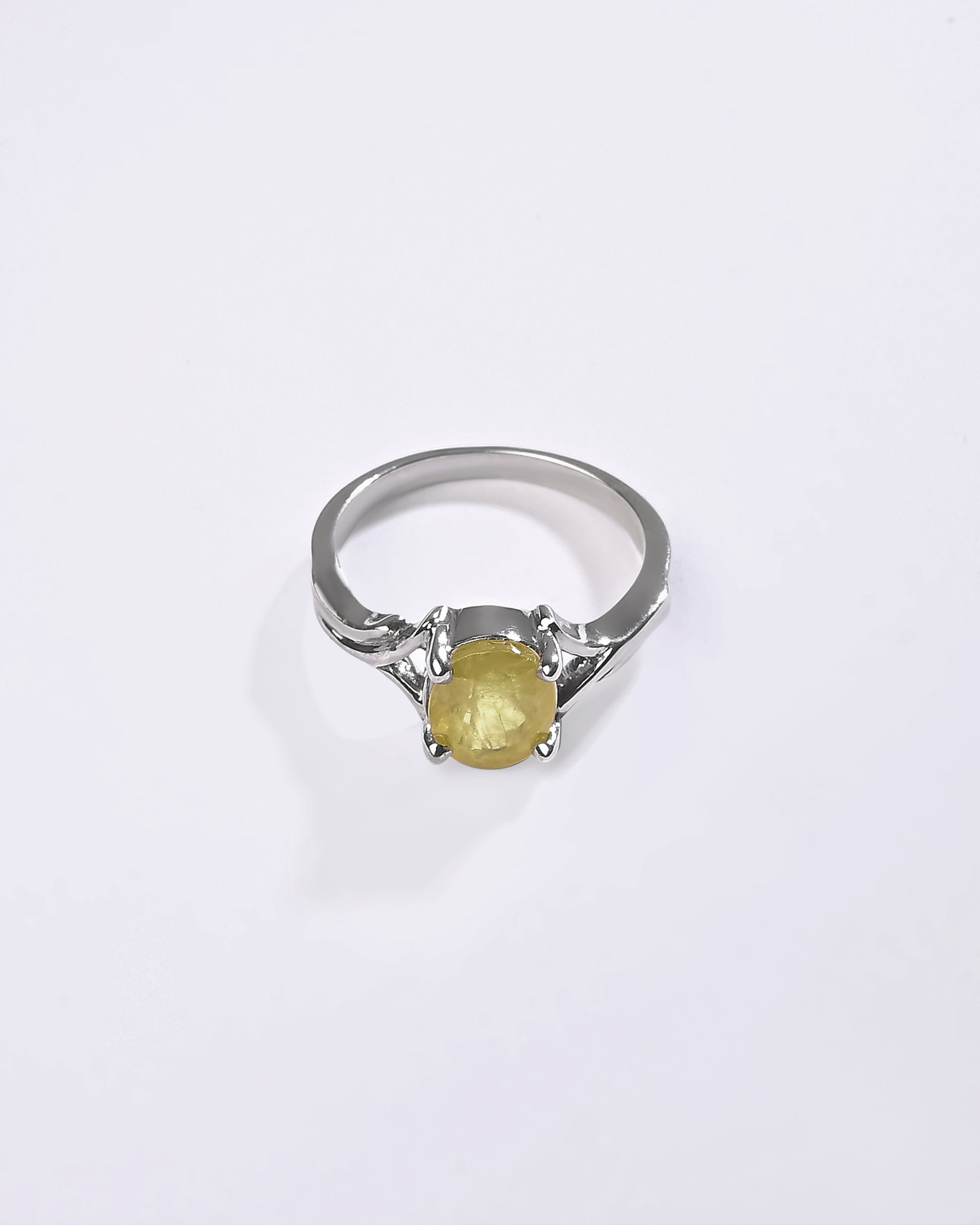 Radiating purity and brilliance, our yellow sapphire ring is set in 925 sterling silver. Known for its golden shimmer, this exquisite gemstone reflects light beautifully, creating a warm and radiant glow. Believed to attract prosperity and success, yellow sapphire is thoughtfully designed to touch your skin, enhancing its astrological energy. Celebrate the perfect blend of elegance and authenticity with a 100% genuine yellow sapphire.