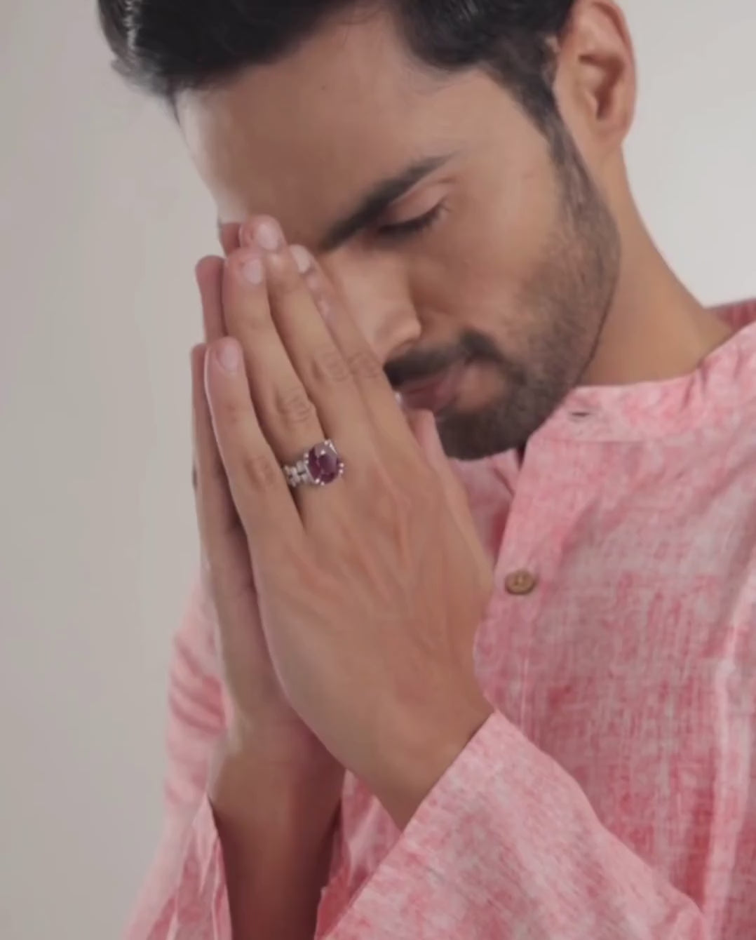 Pure and captivating, our ruby ring is a tribute to the timeless allure of this precious gemstone. Set in 925 sterling silver, the ruby—known as Ratnaraj, or 'King of Gems'—boasts rich crimson shades with soft pink undertones. Its emotional resonance and bold beauty make it truly unique. Crafted to touch your skin, this ring delivers unparalleled astrological benefits with 100% authentic ruby brilliance.