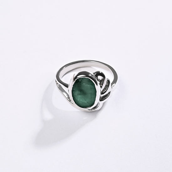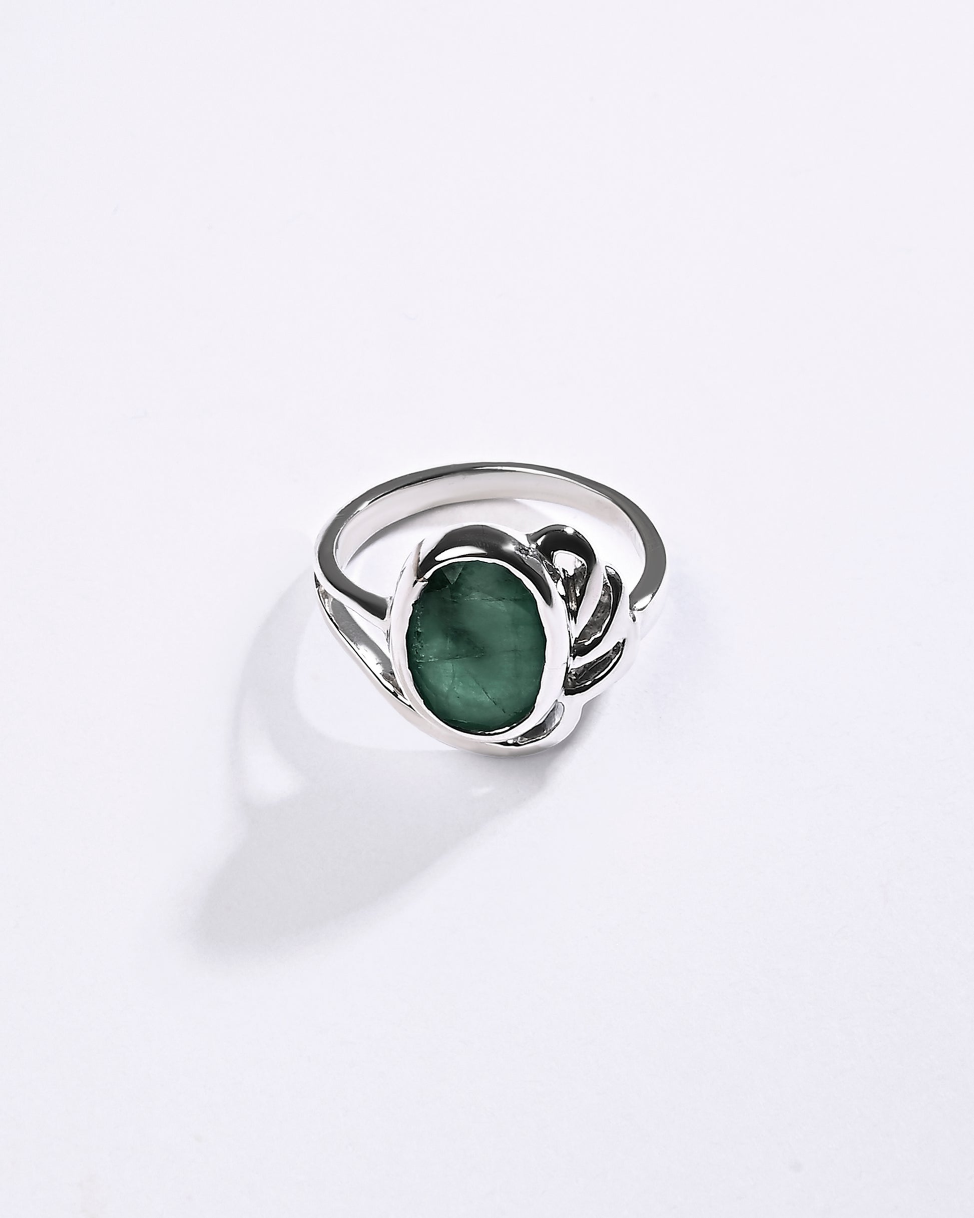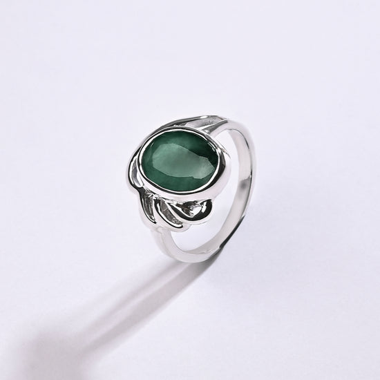 Floral Emerald (Panna) Ring in 925 Sterling Silver - Shakti