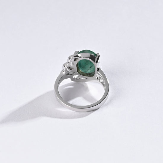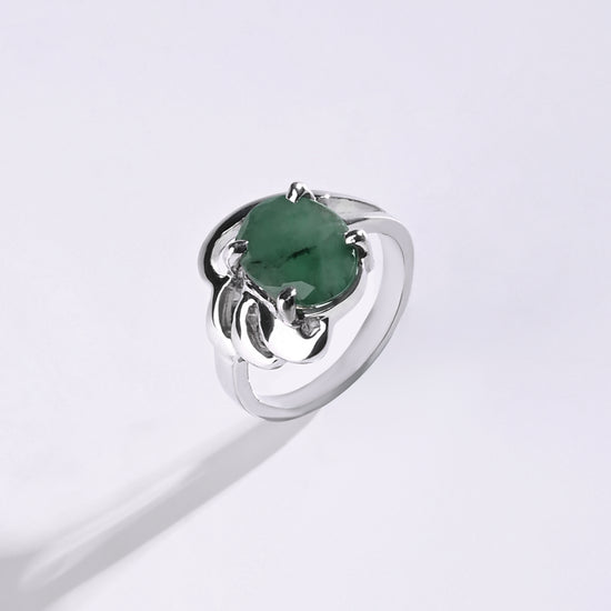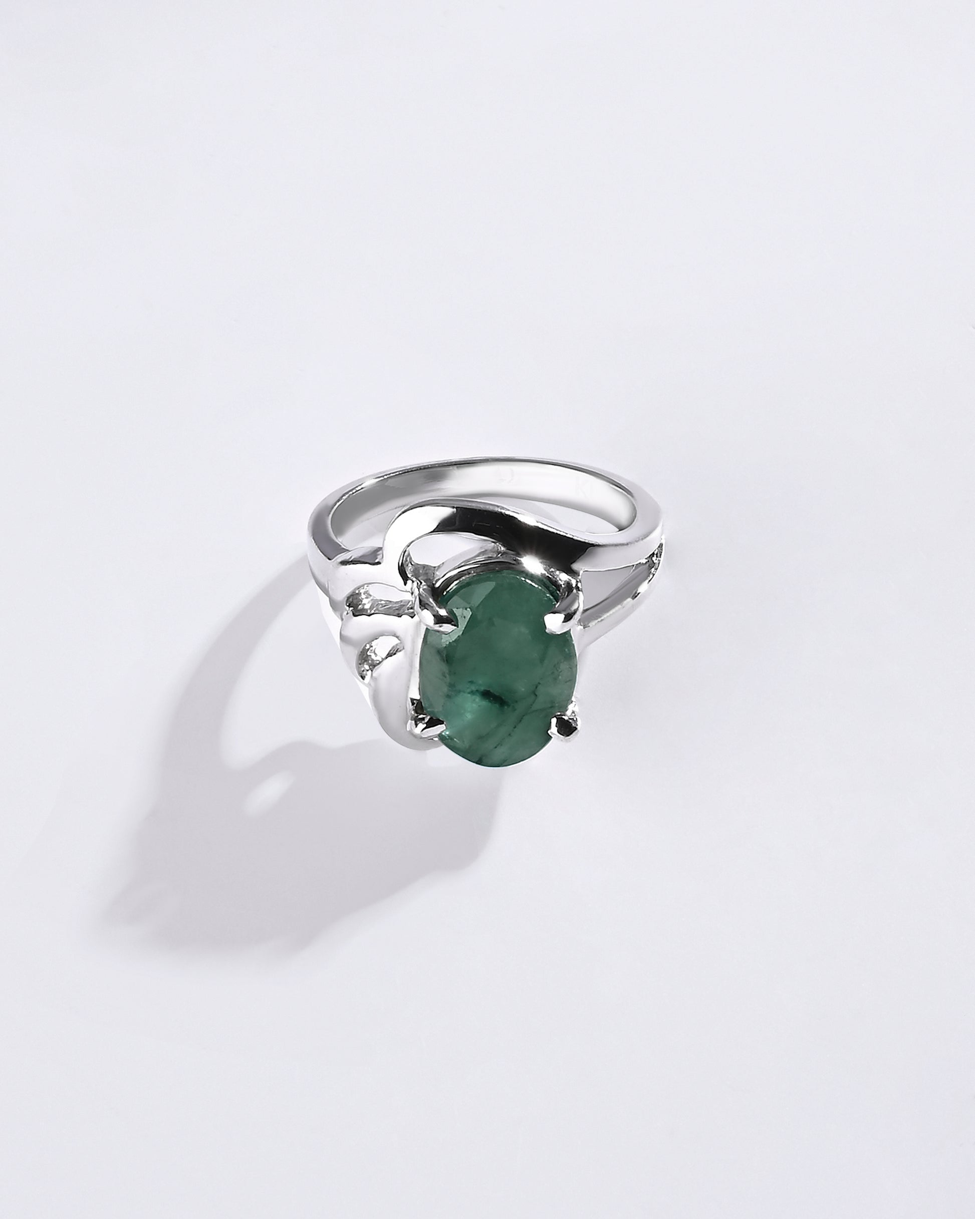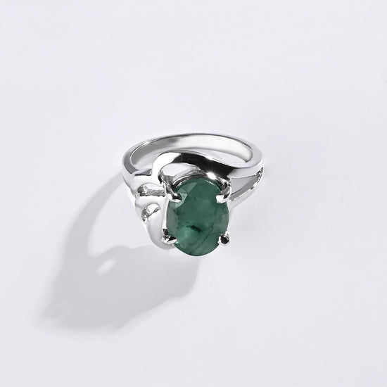 Floral Emerald (Panna) Ring in 925 Sterling Silver - Urja