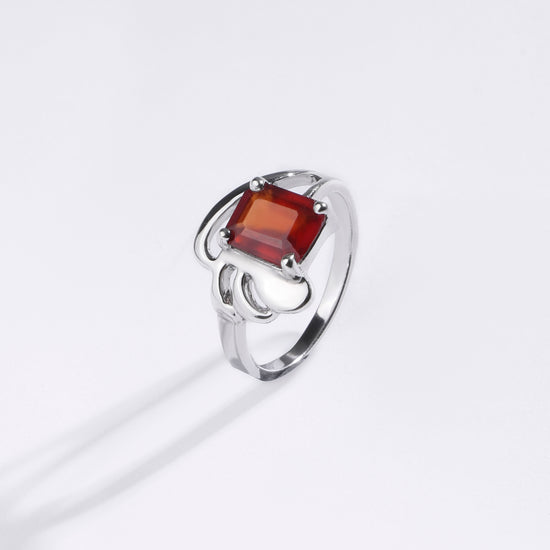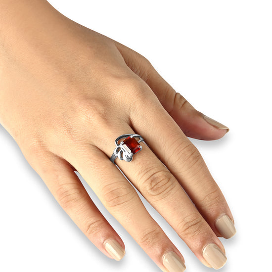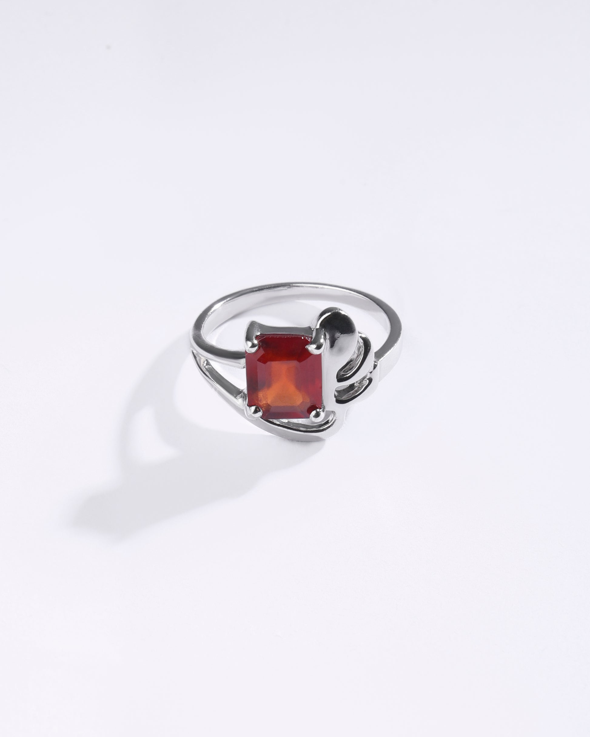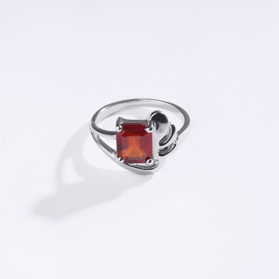 Floral Garnet (Gomed) Ring in 925 Sterling Silver - Urja Sq