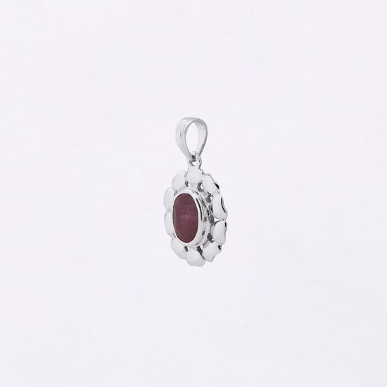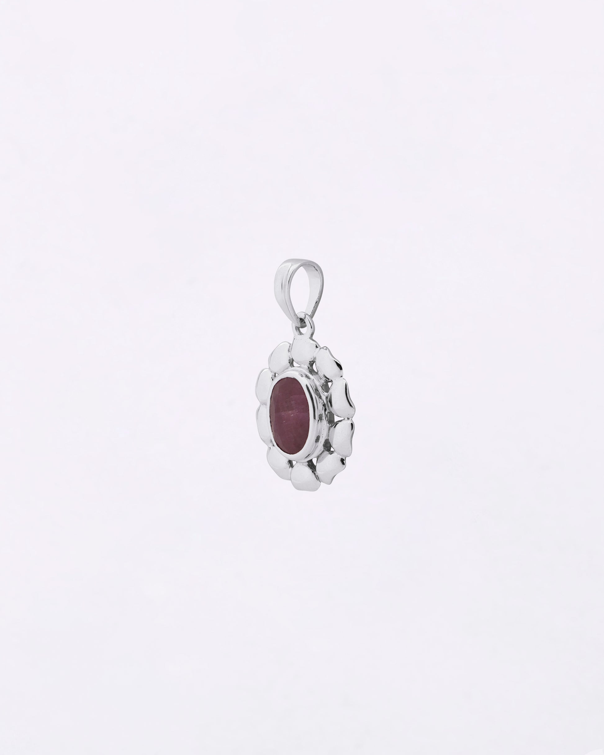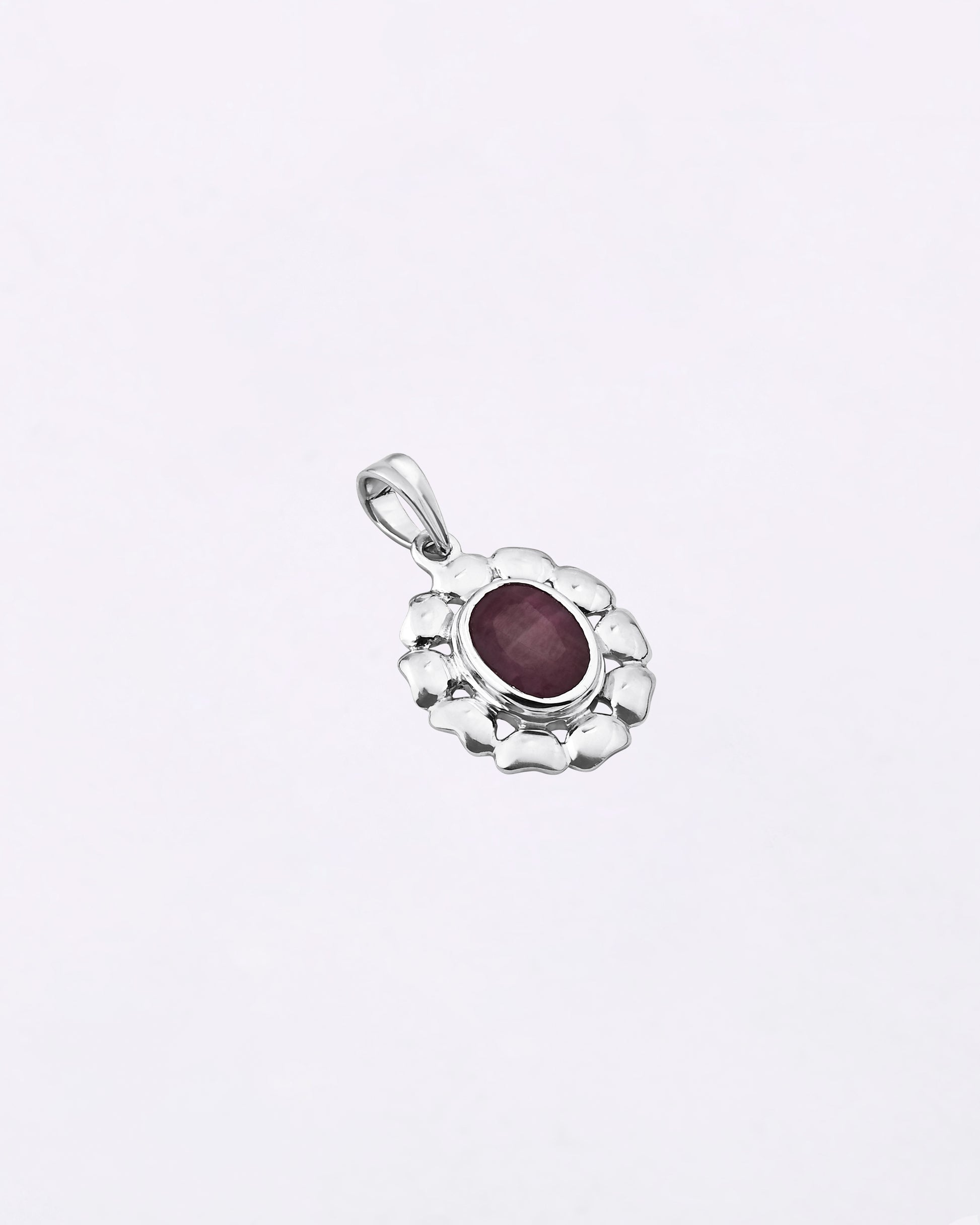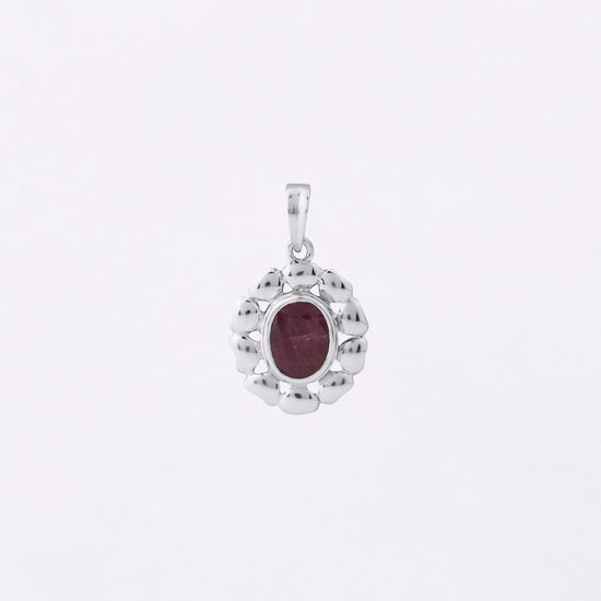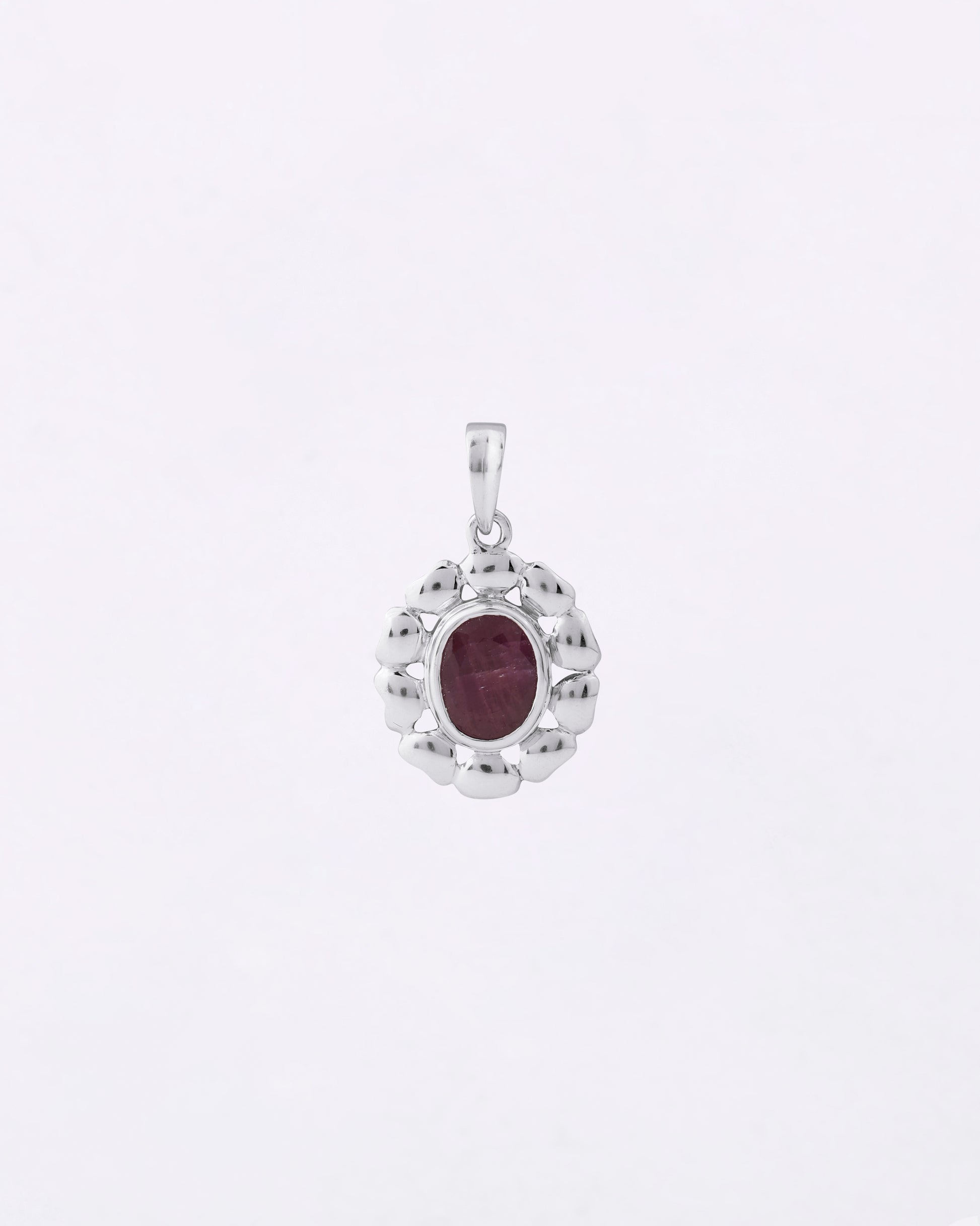 Pure and captivating, our ruby pendant is a tribute to the timeless allure of this precious gemstone. Set in 925 sterling silver, the ruby—known as Ratnaraj, or 'King of Gems'—boasts rich crimson shades with soft pink undertones. Its emotional resonance and bold beauty make it truly unique. Crafted to touch your skin, this pendant delivers unparalleled astrological benefits with 100% authentic ruby brilliance.