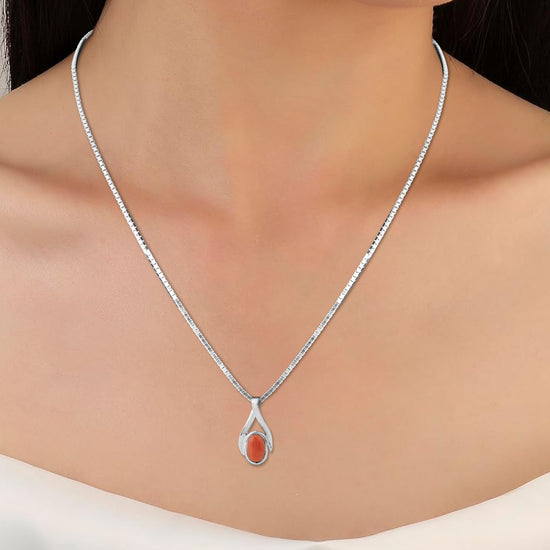Crafted with exceptional purity, our Italian red coral pendant is set in 925 sterling silver. Known as Moonga or Munga in Hindi, this organic gemstone is formed in the depths of the sea, showcasing warm reddish pink to deep red hues. Sourced from the renowned reefs of Italy, this coral pendant is designed to touch your skin, enhancing its astrological and energetic effects. Experience 100% genuine coral in timeless craftsmanship.