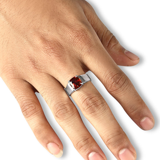 Heirloom Garnet (Gomed) Ring in 925 Sterling Silver - Urja Sq