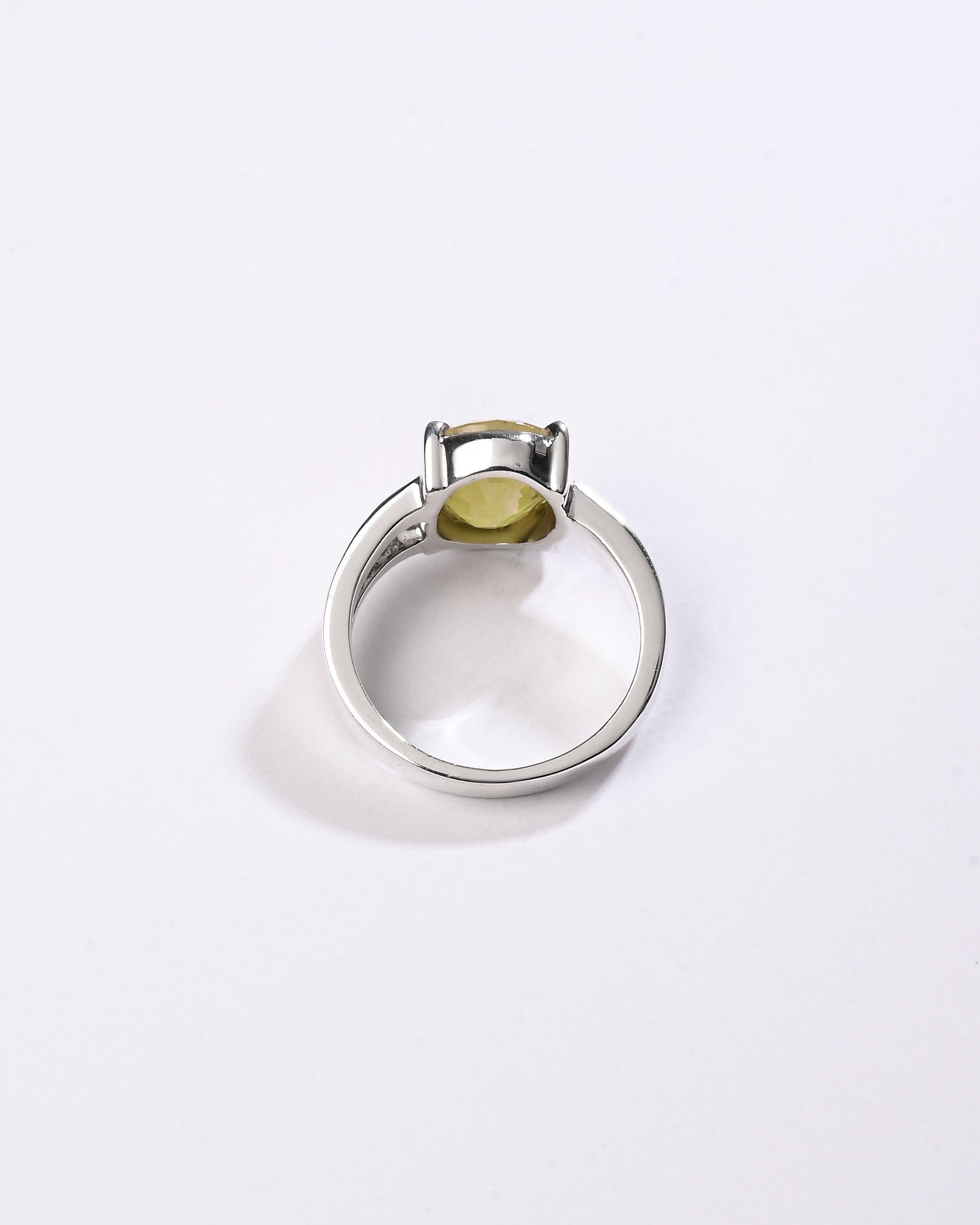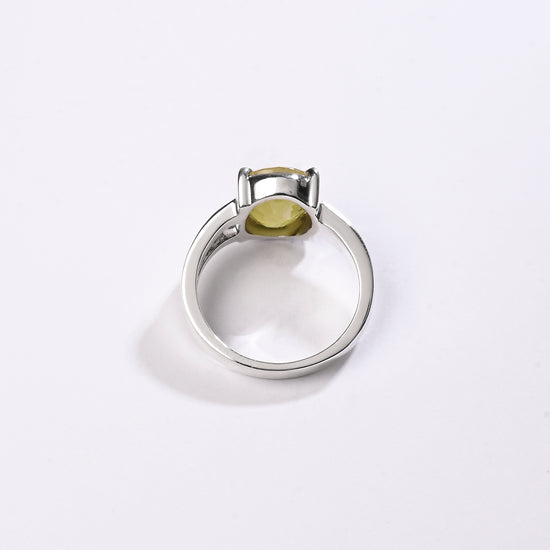 Radiating purity and brilliance, our yellow sapphire ring is set in 925 sterling silver. Known for its golden shimmer, this exquisite gemstone reflects light beautifully, creating a warm and radiant glow. Believed to attract prosperity and success, yellow sapphire is thoughtfully designed to touch your skin, enhancing its astrological energy. Celebrate the perfect blend of elegance and authenticity with a 100% genuine yellow sapphire.
