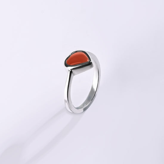 Minimalist Coral (Moonga) Ring in 925 Sterling Silver - Shakti Hr