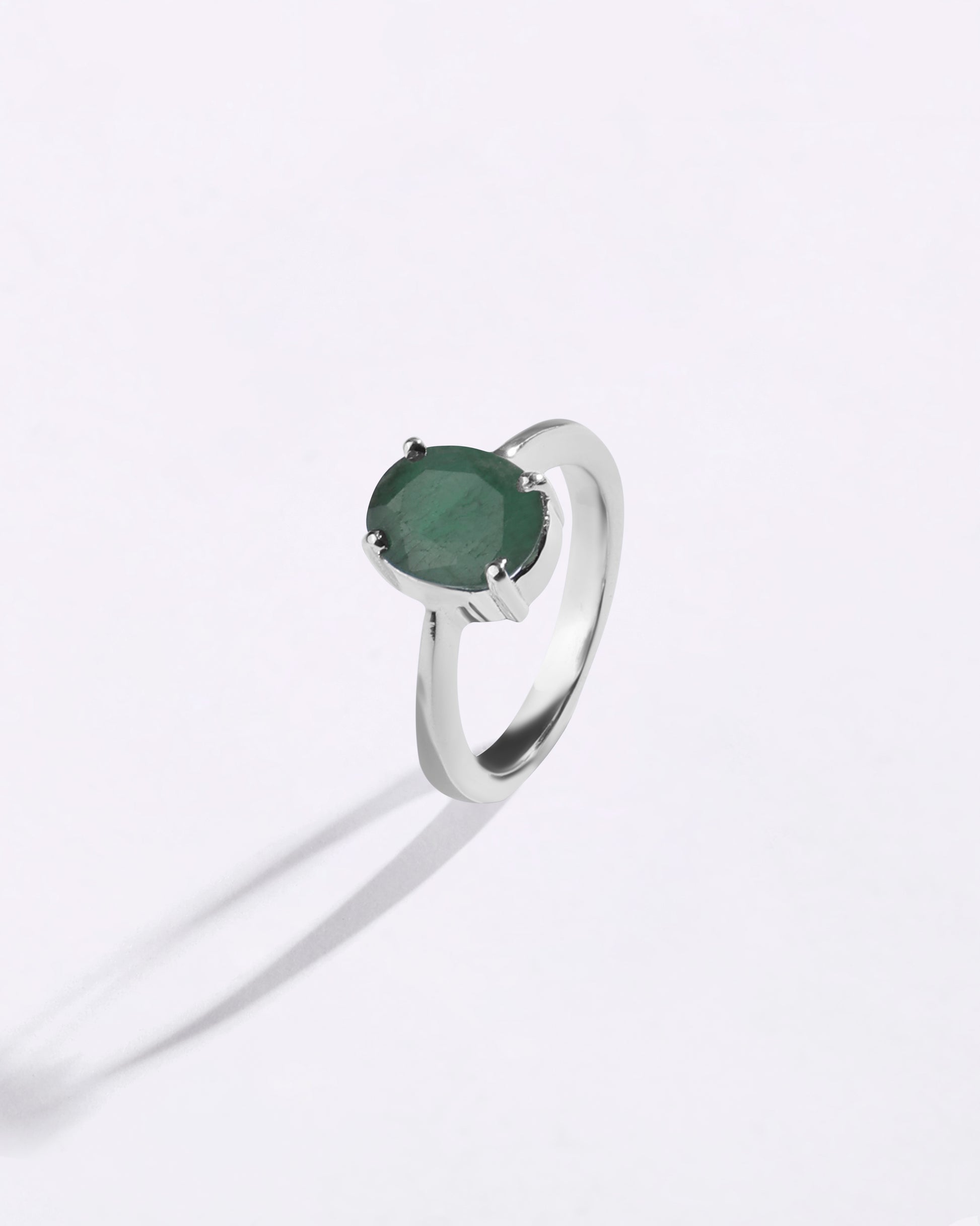 Minimalist Emerald (Panna) Ring in 925 Sterling Silver - Urja