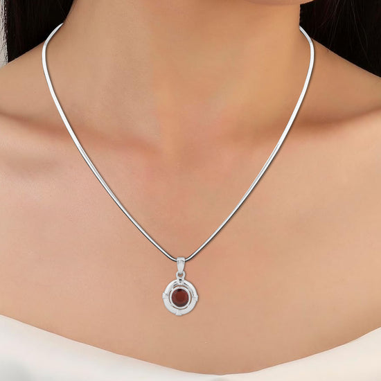 Channel grounding strength and emotional resilience with our deep red Garnet (Gomed) pendant, set in 925 sterling silver. A gemstone of passion and protection, Garnet has been cherished across cultures for its energizing and stabilizing powers. Its rich hue and inner glow make it a favorite for those seeking bold yet balanced energy. This pendant, featuring 100% genuine garnet, is designed to touch your skin and maximize its astrological benefits.