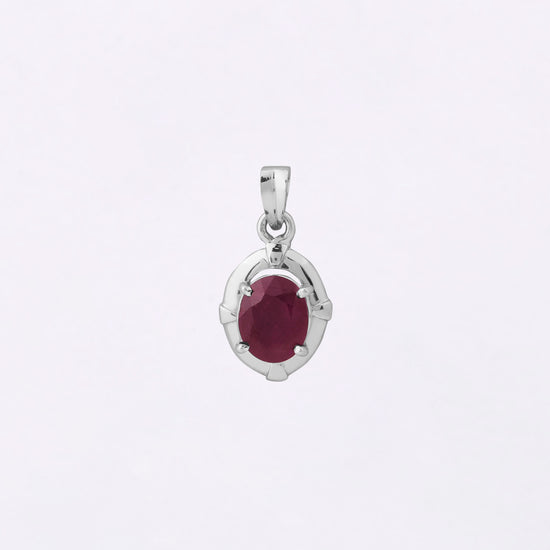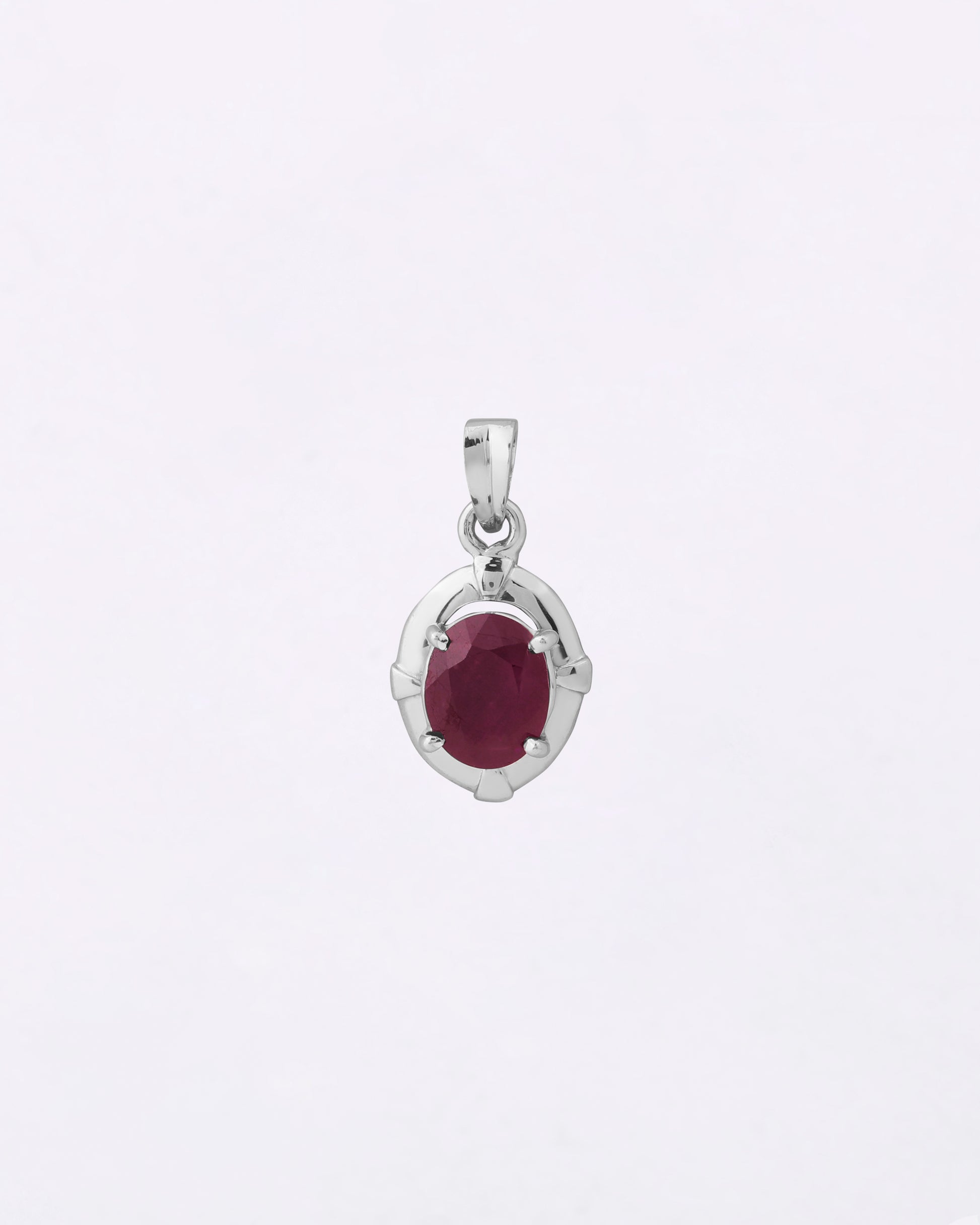 Pure and captivating, our ruby pendant is a tribute to the timeless allure of this precious gemstone. Set in 925 sterling silver, the ruby—known as Ratnaraj, or 'King of Gems'—boasts rich crimson shades with soft pink undertones. Its emotional resonance and bold beauty make it truly unique. Crafted to touch your skin, this pendant delivers unparalleled astrological benefits with 100% authentic ruby brilliance.