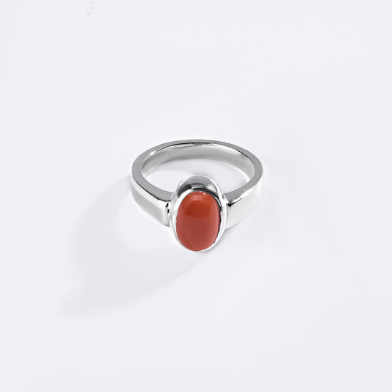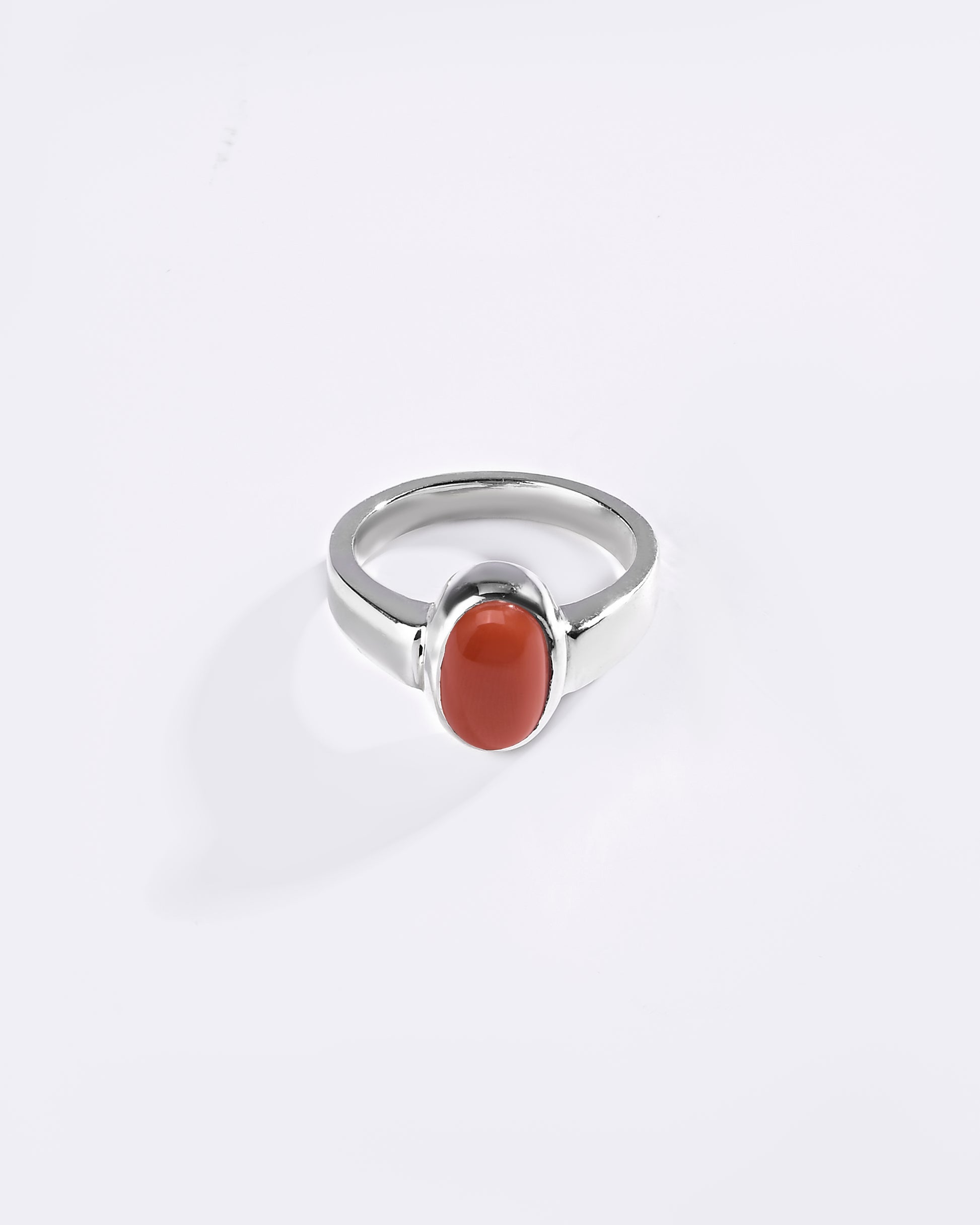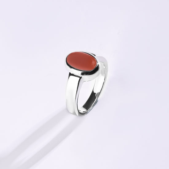 Natural Coral (Moonga) Ring in 925 Sterling Silver - Shakti