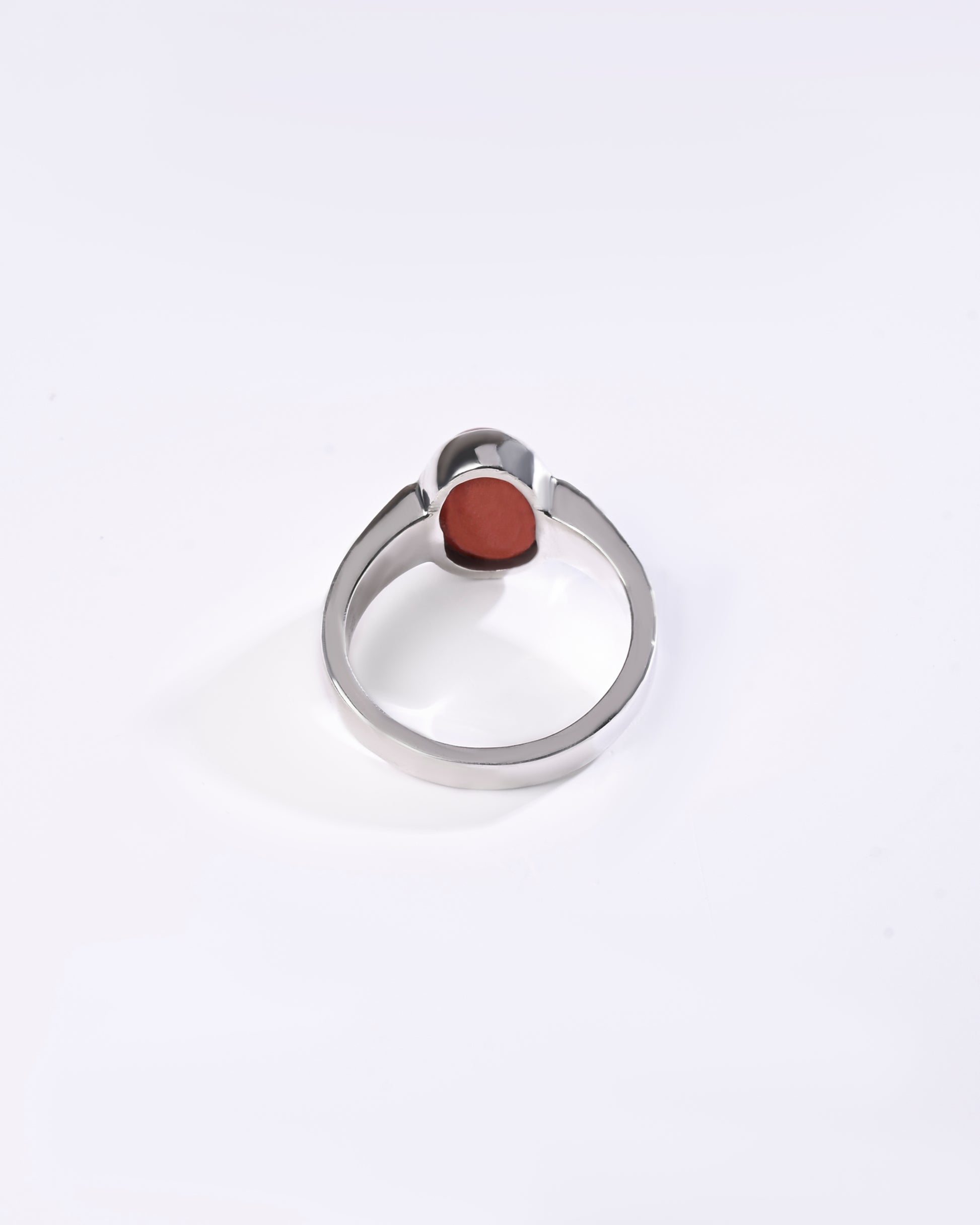 Crafted with exceptional purity, our Italian red coral ring is set in 925 sterling silver. Known as Moonga or Munga in Hindi, this organic gemstone is formed in the depths of the sea, showcasing warm reddish pink to deep red hues. Sourced from the renowned reefs of Italy, this coral ring is designed to touch your skin, enhancing its astrological and energetic effects. Experience 100% genuine coral in timeless craftsmanship.