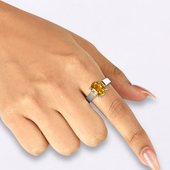 Infuse your life with positivity and personal strength with our Golden Topaz (Sunahara Pukhraj) ring, set in 925 sterling silver.