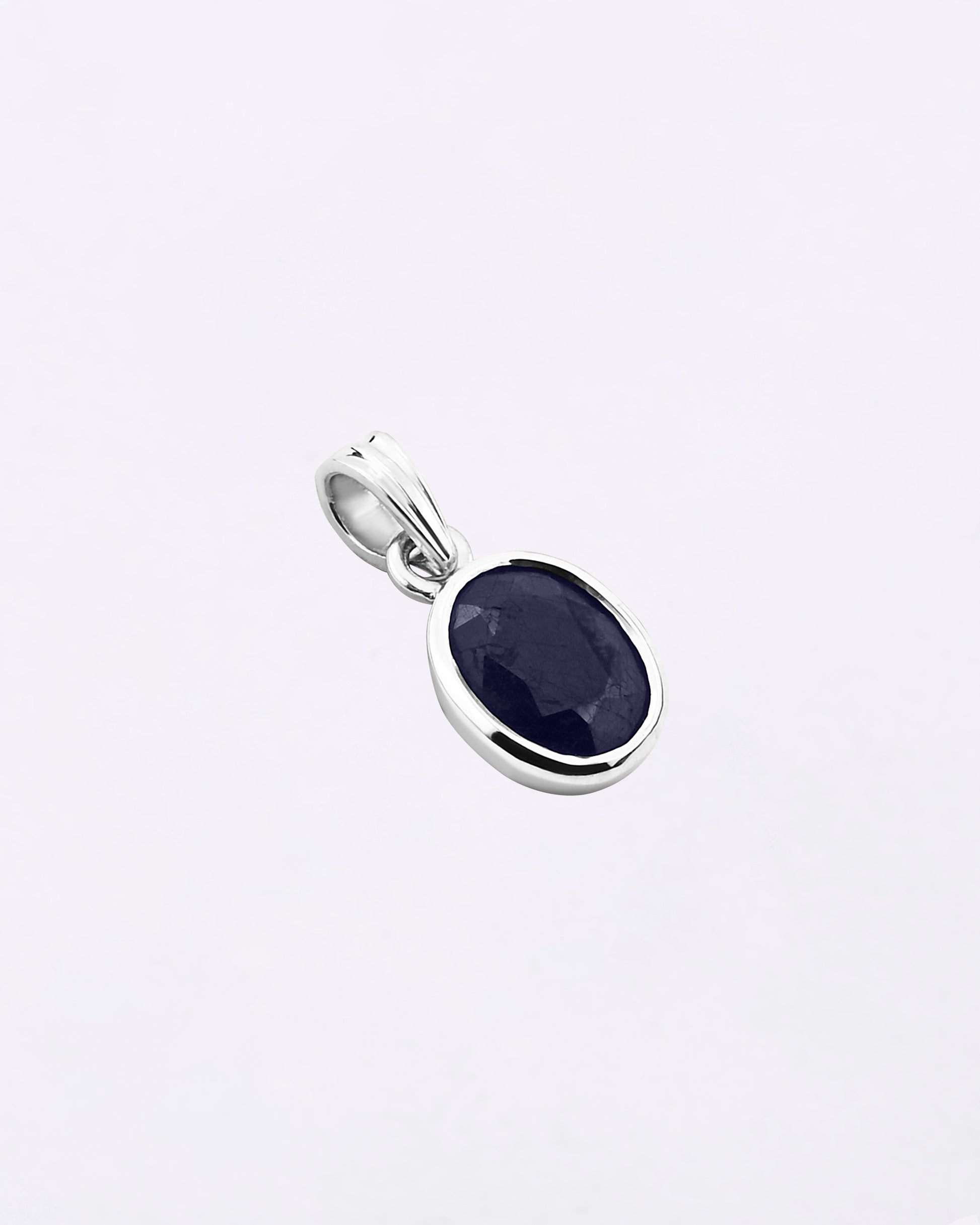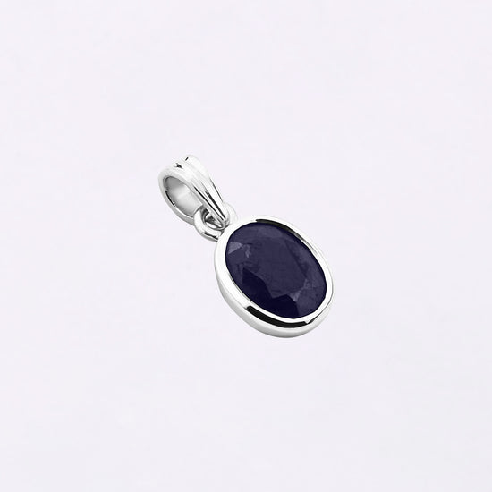 Exuding royal elegance and purity, our blue sapphire pendant is set in 925 sterling silver. Known as Neelam in Hindi, this precious gemstone radiates a deep blue hue with a velvety transparency. Revered for centuries as a symbol of wisdom and nobility, this blue sapphire is designed totouch your skin, maximizing its astrological benefits. Crafted with precision, this pendant guarantees 100% authentic blue sapphire purity.