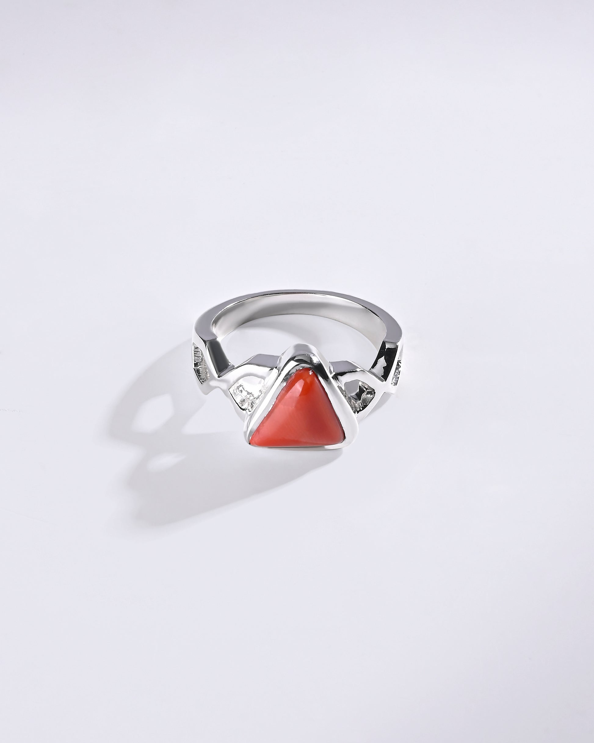 Powerful Coral (Moonga) Ring in 925 Sterling Silver - Shakti Tr