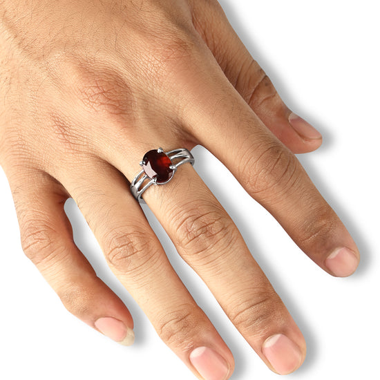 Precious Garnet (Gomed) Ring in 925 Sterling Silver - Urja