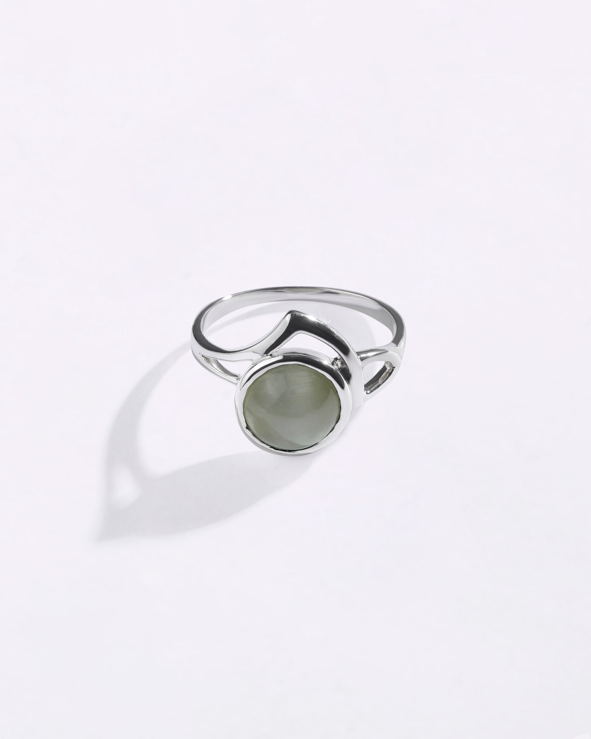 Serene Cat'S Eye (Lehsunia) Ring in 925 Sterling Silver - Shakti