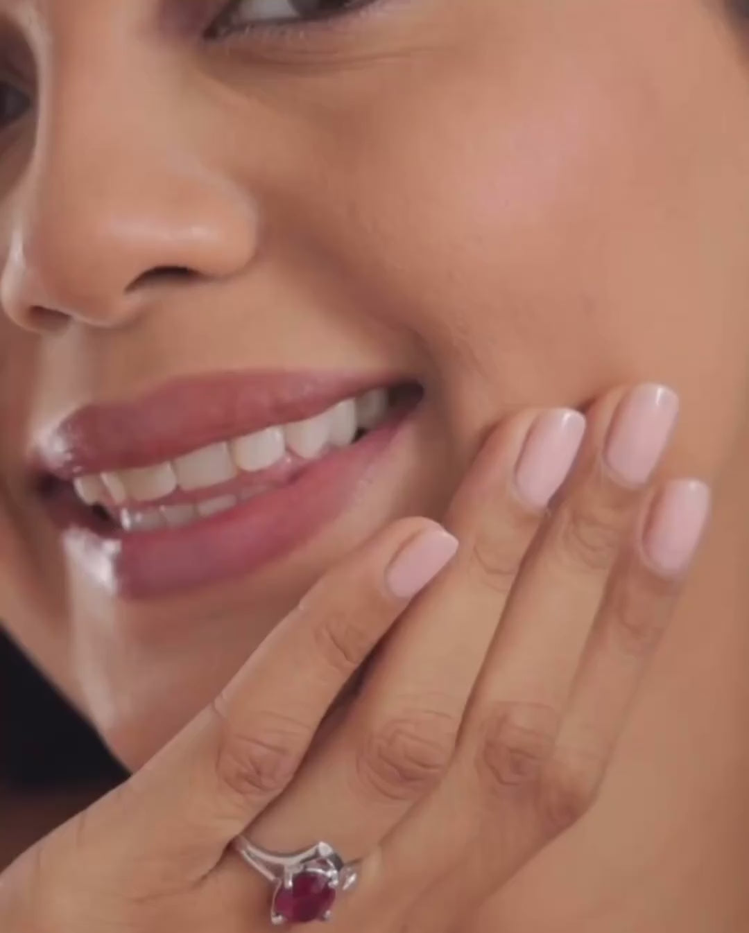 Pure and captivating, our ruby ring is a tribute to the timeless allure of this precious gemstone. Set in 925 sterling silver, the ruby—known as Ratnaraj, or 'King of Gems'—boasts rich crimson shades with soft pink undertones. Its emotional resonance and bold beauty make it truly unique. Crafted to touch your skin, this ring delivers unparalleled astrological benefits with 100% authentic ruby brilliance.