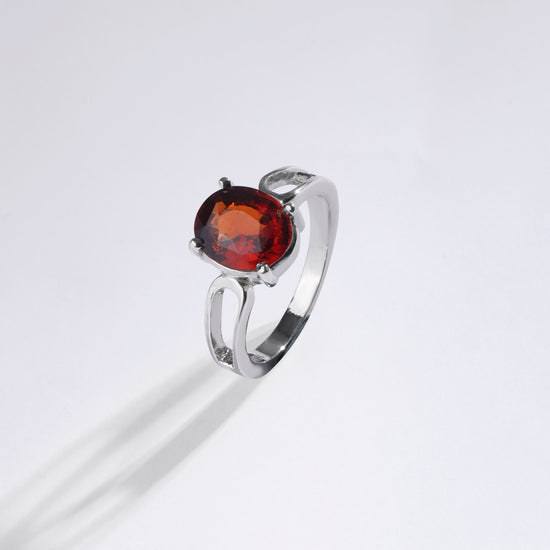 Sleek Garnet (Gomed) Ring in 925 Sterling Silver - Urja
