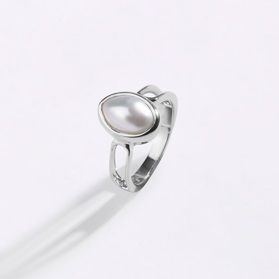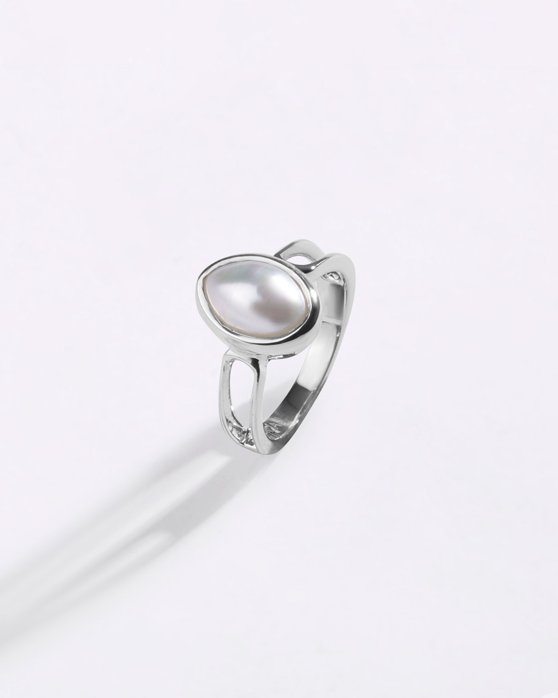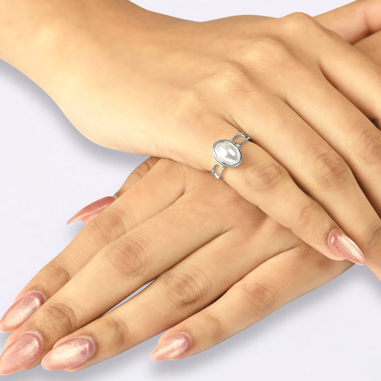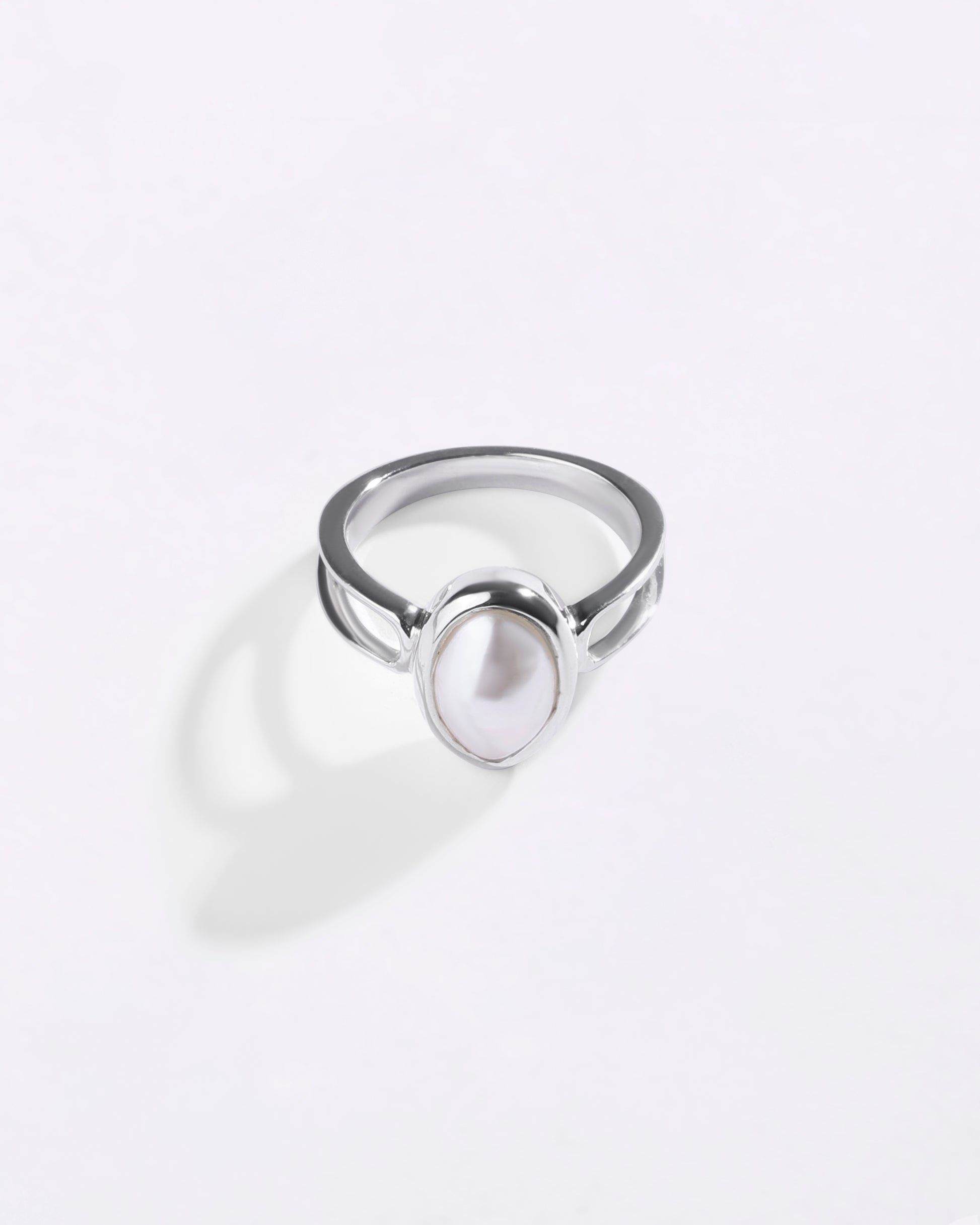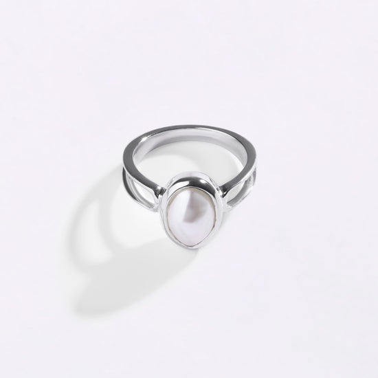 Sleek Pearl (Moti) Ring in 925 Sterling Silver - Shakti U