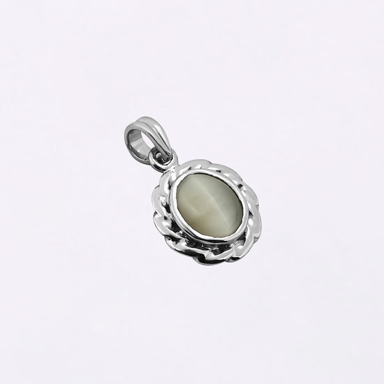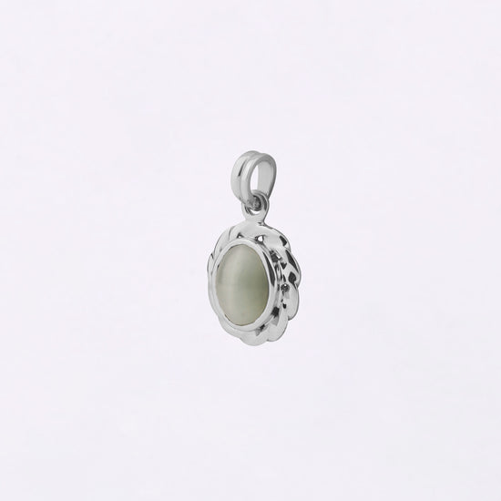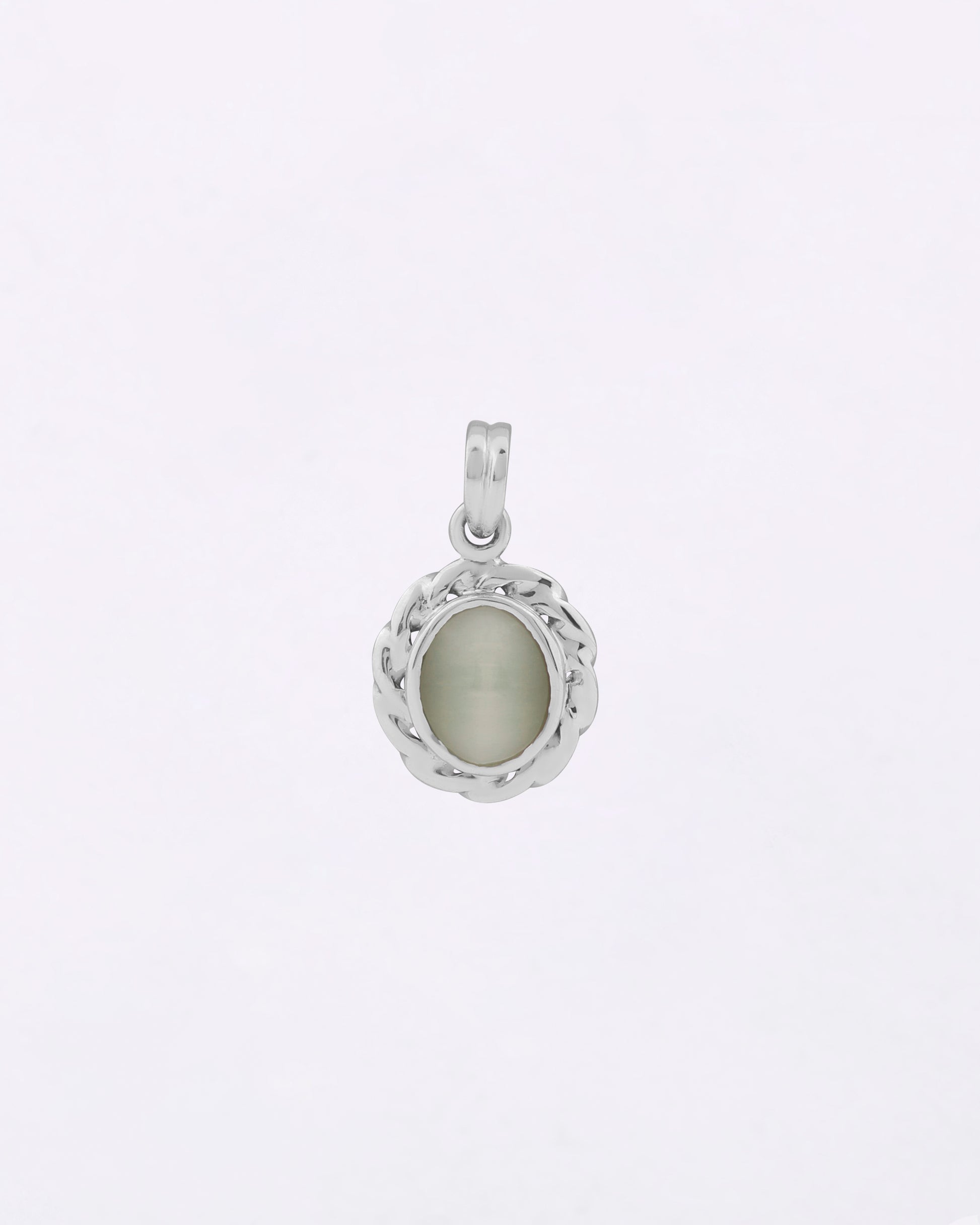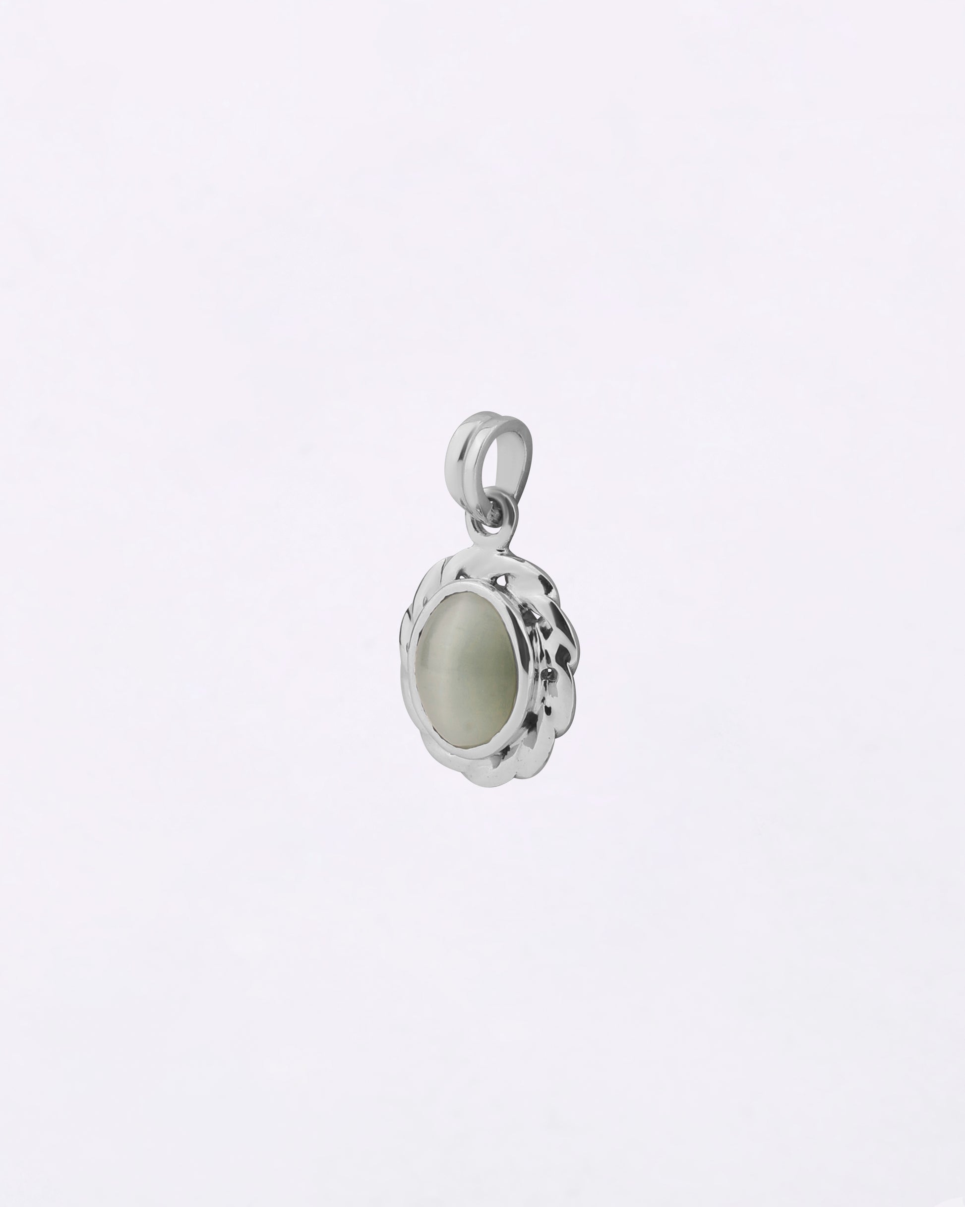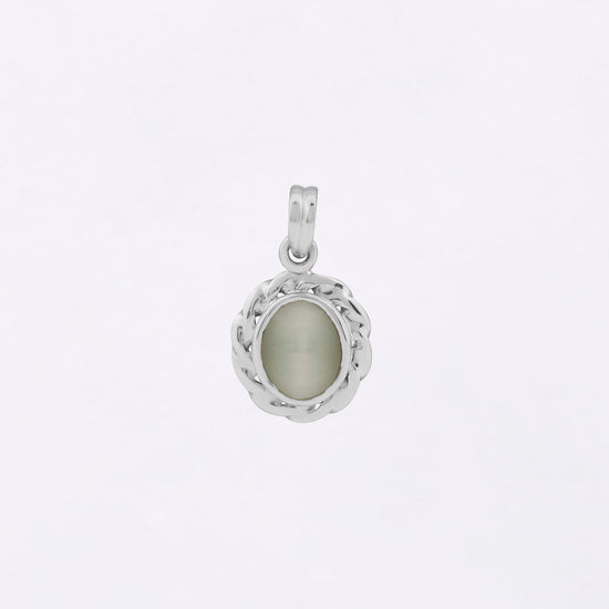 Mystical protection meets timeless purity in our Cat’s Eye (Lehsunia) pendant, crafted in 925 sterling silver. With its unique light-reflecting streak that resembles a feline eye, this rare gemstone is revered for warding off negativity and enhancing intuition. Carefully designed to touch your skin, the pendant is made using traditional astrological methods and showcases 100% natural Cat’s Eye, offering clarity and spiritual protection in an elegant form.