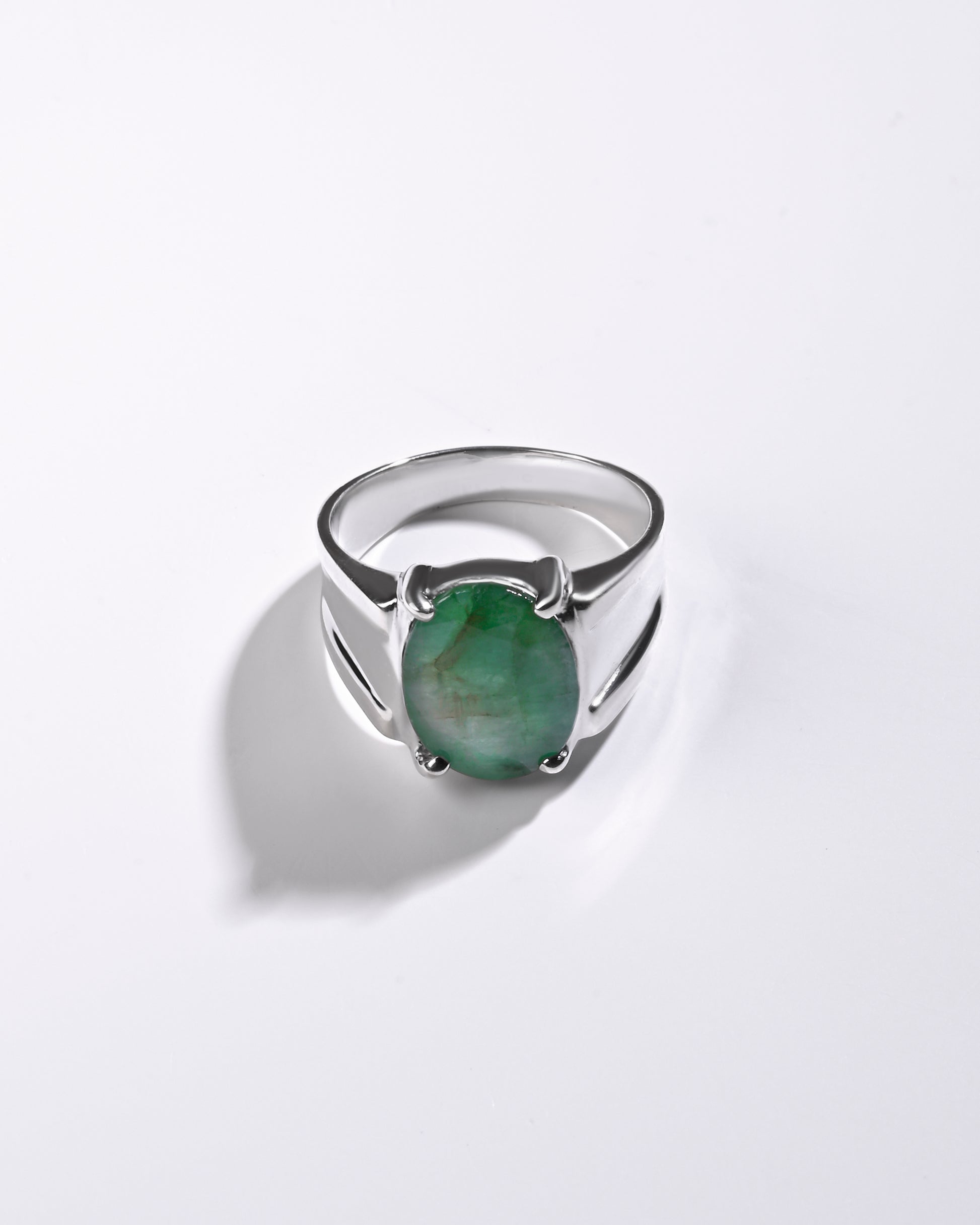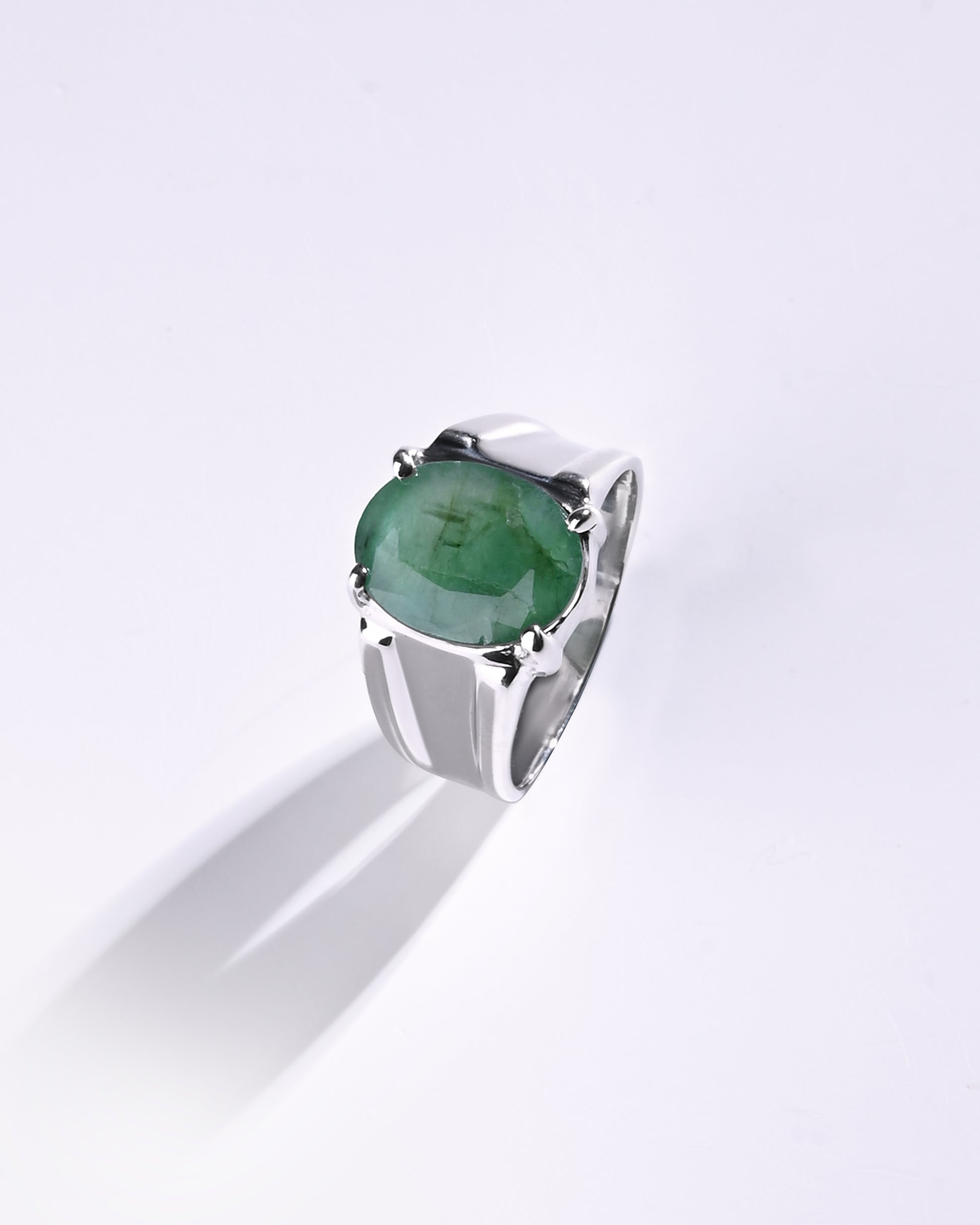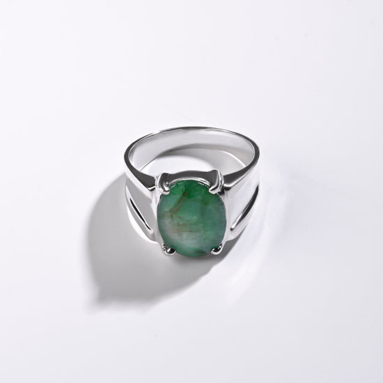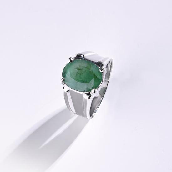 The purity of nature shines in our rich green emerald, set in 925 sterling silver. This precious gemstone from the Beryl family owes its vibrant green hue to natural traces of chromium. Cherished for centuries as a symbol of renewal and vitality, emerald (Panna) is carefully designed to touch your skin for optimal astrological benefits. Experience 100% authentic emeralds in a luxurious and expertly crafted ring.