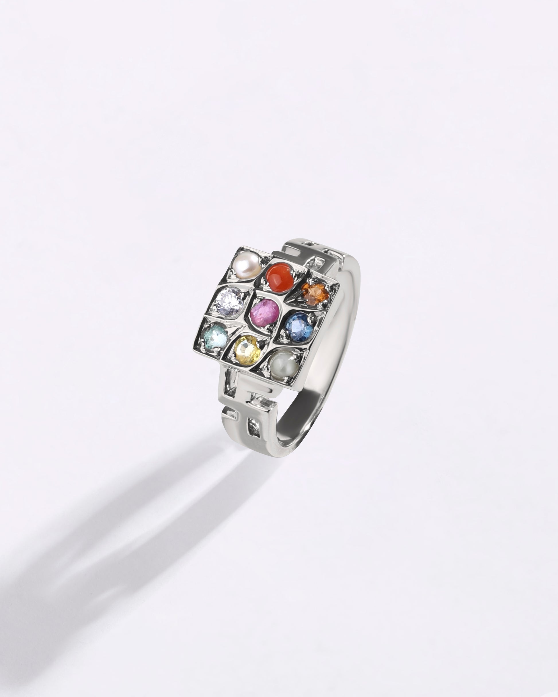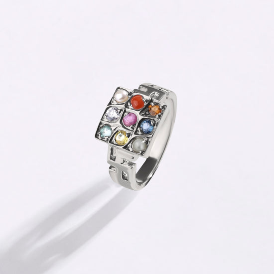 Swastik Navratna (Navgrah) Ring in 925 Sterling Silver