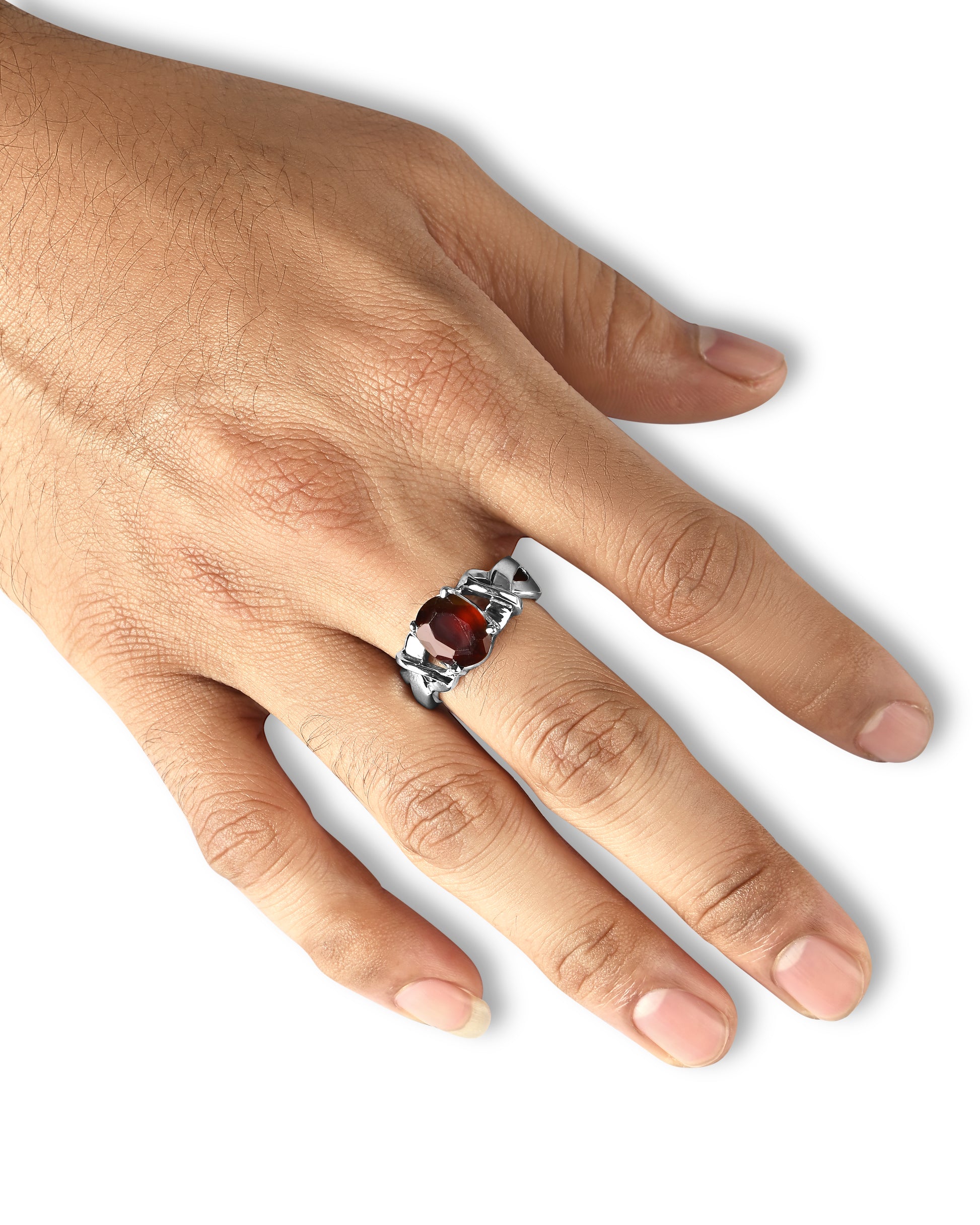 Unique Garnet (Gomed) Ring in 925 Sterling Silver - Urja