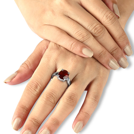 Vibrant Garnet (Gomed) Ring in 925 Sterling Silver - Urja